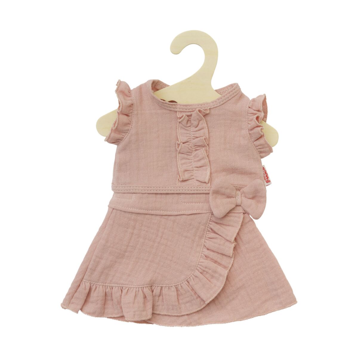 Der luftig-leichte Puppen-Wickelrock mit Rüschen-Top von Heless aus 100% Bio-Baumwolle bietet Dir unbedenklichen und grenzenlosen Spielspaß mit Deiner Puppe. Das 2-teilige Outfit mit verspielten Details sieht nicht nur absolut bezaubernd aus, sondern verleiht ein durch und durch gutes Gefühl. Der weiche Musselinstoff in zartem Rosé stammt aus kontrolliert biologischem Anbau und schafft ein besonders behagliches und natürliches Spielerlebnis. Ein Puppenoutfit in liebevollem Design, das durch seine sanfte Farbe, höchste Qualität und niedliche Rüschenelemente besticht. Die Klettverschlüsse an Top und Rock sorgen dafür, dass das Puppenoutfit kinderleicht an- und ausgezogen werden kann. Das Kleid passt den meisten marktgängigen Puppen der Größe 35-45 cm. Der Artikel wird auf einem Holzkleiderbügel geliefert..