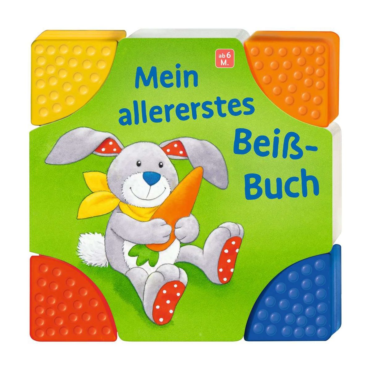 Dieses Buch haben Babys zum Fressen gern! Denn vier farbenfrohe Beißecken wecken die Entdeckerlust von Kindern ab 6 Monaten. In diesem Alter wird gern alles in den Mund genommen. Deshalb sind die genoppten Kunststoffecken beim Knabbern, Kauen und Beißen besonders spannend für Babys – vor allem, wenn die ersten Zähnchen kommen. Die Beißecken sind extrastabil, abwaschbar und aus unbedenklichen Materialien. Im Inhalt entdecken Babys viele bekannte Motive – wie Teddy, Banane oder Mond – zum einfachen Erkennen und später auch Benennen.Ein Buch zum Anbeißen! Denn hier darf geknabbert, gelutscht und gekaut werden. Die vier stabilen und beißfesten Ecken sind aus unbedenklichen Materialien und laden Babys ab 6 Monaten zum Knabbern, Beißen und Kauen ein, vor allem, wenn die ersten Zähnchen kommen. Die Ecken sind extra für Babys entwickelt worden, damit sie dieses Buch mit allen Sinnen erforschen können. Denn Babys entdecken in diesem Alter vor allem mit dem Mund! Teddybär, Banane, Mond oder Kuschelmaus – beim Betrachten der farbenfrohen Bilder schulen die Kleinen spielerisch ihre Wahrnehmung und lernen ganz nebenbei Sprechen. Dieses Spielbuch ist genau auf die Entwicklung von Kleinkindern abgestimmt und besteht aus unbedenklichen Materialien. Es wurde von Pädagogen entwickelt und fördert Kinder altersgerecht und mit viel Spaß!