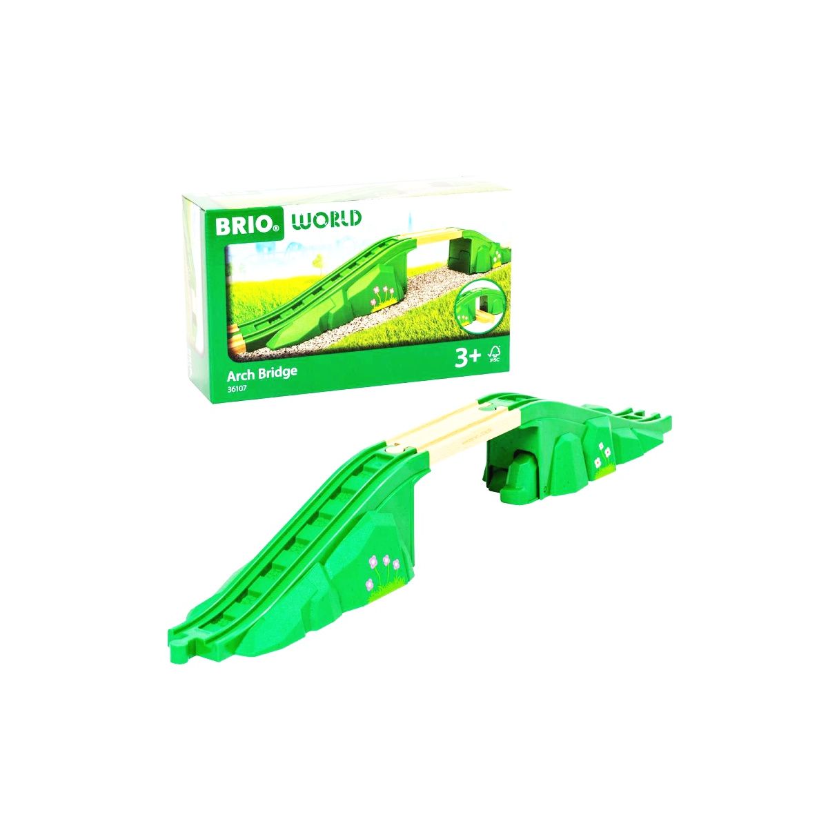 Kleine Lokführer werden es lieben, mit ihren Zügen über die Modulare Brücke zu fahren. Dieses Eisenbahnzubehör passt zu allen Arten von Eisenbahnstrecken und bietet großes Spielvergnügen für jüngere Kinder. Die Brücke kann geteilt und mit Gleisstücken erweitert werden. Dank robuster Stützen steht sie stabil und kann beim Spielen nicht versehentlich umgestoßen werden. Unter der Brücke ist sogar Platz für ebenerdige Gleise, sodass sie sich auch perfekt für kompliziertere Schienenlayouts eignet.Über BRIO World: Die BRIO World ist unser offenes Spielsystem, das mit dem Kind mitwächst. Alle Spielzeuge der BRIO World passen zusammen und lassen sich zu einer Spielewelt kombinieren, die sich hervorragend eignet, um die kindliche Entwicklung zu fördern. Endlose fantasievolle Spielmöglichkeiten warten nur darauf, entdeckt zu werden. Die Modulare Brücke enthält 3 Teile: 2 x Brückenteile, 1 x Holzschiene..
