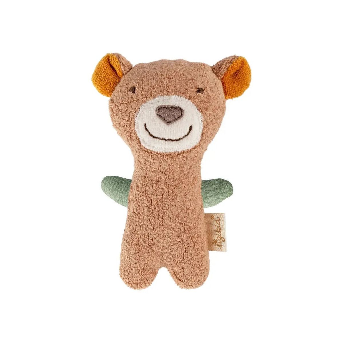 Spielen, Entdecken, Kuscheln und Träumen – das niedliche Bärchen sorgt für Spielspaß in Babys Alltag. Der kleine Bär ist das perfekte erste Spielzeug für Babys: durch die handliche Größe und die schlanke Form lässt sich der Rasselgreifling leicht greifen und festhalten. Sein feines Rasselgeräusch animiert die Kleinen das kleine Stofftier mit allen Sinnen zu erkunden und immer wieder nach ihm zu angeln. Die softe Haptik des weichen Baumwollstoffs und der spannende Klang der Rassel machen den süßen Bären mit dem freundlichen Gesicht schnell zum liebsten Begleiter durch dick und dünn. Sollte das Babyspielzeug beim Einsatz schmutzig werden, so kann es in der Waschmaschine bei 30 °C gewaschen werden. Es hält auch häufiger Wäsche stand. sigikid legt besonderen Wert auf ausgesuchte Materialien und durchdachtes Design. Um die Sicherheit unserer Produkte zu gewährleisten, werden von akkreditierten Prüfinstituten regelmäßig Prüfungen gemäß dem aktuell geltenden (europäischen) Recht durchgeführt. Die Marke sigikid steht für kuschelige Produkte, die Emotionen wecken und Eltern und Kindern gleichermaßen ein gutes Gefühl vermitteln. Seit über 55 Jahren folgt sigikid einem klaren Leitsatz: FIRST CLASS FOR KIDS! Wir machen die Welt für Familien von Anfang an kuscheliger und bunter.