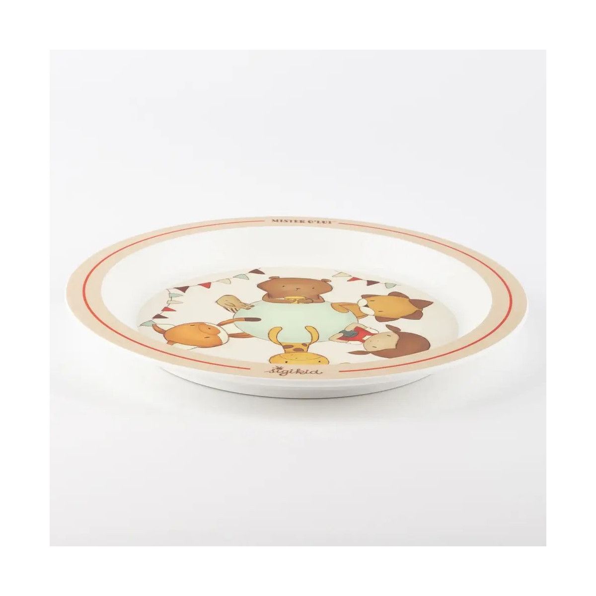 Mister O‘Lui – der außergewöhnliche Biberbär und seine Freunde bringen gute Laune auf jeden Tisch. Der Kinderteller in Beige und warmen Rot ist mit dem liebevollen und kindgerechten Design bei kleinen Mädchen und Jungen gleichermaßen beliebt. Mit den süßen Kuschelfreunden im Blick machen die Mahlzeiten noch mehr Freude – denn das Auge isst auch schon bei den Kleinsten mit! Der hübsche Kinderteller hat einen Durchmesser von 21,5 cm und ist besonders für Kinder von 2 bis 8 Jahren geeignet. Er ist praktisch, sicher und langlebig. sigikid legt besonderen Wert auf ausgesuchte Materialien und durchdachtes Design. Der Gummiring am Boden des Tellers macht das Geschirr rutschfest und sorgt somit für guten Halt auf dem Tisch. Der abgeschrägte Rand hilft, dass beim ersten selbständigen Essen nicht allzu viel vom Teller rutscht - so werden die Mahlzeiten zum Kinderspiel. Zu der Geschirr-Serie „Mister O‘Lui gehören ebenso Tassen, Schüsseln und ein Besteck-Set im passenden Dekor. Der Teller besteht zu 100% aus rPET. Dieses Material wird direkt aus Kunststoffen PET recycelt, welche in der Industrie bei der Produktion anfallen. So möchten wir qualitativ hochwertiges Recycling und Kreislaufwirtschaft fördern. Das Material ist sehr robust, aber nicht komplett unzerbrechlich. Der Teller ist für die Reinigung in der Spülmaschine und für die Verwendung in der Mikrowelle geeignet – bitte hierzu unsere Gebrauchsanleitung beachten. Der Silikonring im Boden kann zur gründlichen Reinigung entnommen werden. Das Geschirr ist selbstverständlich frei von Weichmachern. Um die Sicherheit unserer Produkte zu gewährleisten, werden von akkreditierten Prüfinstituten regelmäßig Prüfungen gemäß dem aktuell geltenden (europäischen) Recht durchgeführt. Die Marke sigikid steht für kindgerechte Produkte, die Emotionen wecken und Eltern und Kindern gleichermaßen ein gutes Gefühl vermitteln. Seit über 50 Jahren folgt sigikid einem klaren Leitsatz: FIRST CLASS FOR KIDS! Wir machen die Welt von Familien von Anfang an kuscheliger und bunter.