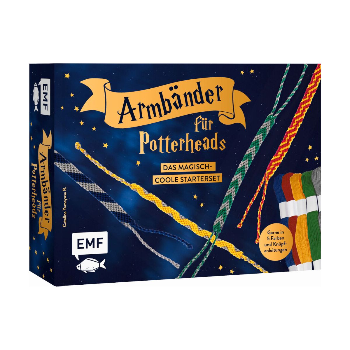 Zeige allen, welchem der vier Häuser du dich zuordnest – mit einem selbst geknüpften Armband in den pottertypischen Hausfarben. Knüpfe mit den enthaltenen Anleitungen Freundschaftsbändchen für dich und deine Mitschüler*innen: Mit den enthaltenen Garnen in 5 verschiedenen Farben zeigt ihr eure Haus-Zugehörigkeit, auch wenn euch der lang ersehnten Brief mit der Aufnahmebestätigung in die Zauberschule noch nicht erreicht hat. Die ausführlichen Schritt-Anleitungen und vielen Stepfotos machen das Knüpfen so einfach, dass man fast glauben könnte, es sei Magie im Spiel! Bändchen im Stil des Potter-Universums knüpfen. Sofort loslegen dank 5 enthaltenen Garnen und Anleitungen für 4 verschiedene Bändchen. Mit ausführlich bebilderten Schritt-für-Schritt-Anleitungen .Zeigst du mit deinem rot-goldenem Band, wie mutig du bist? Oder unterstreicht ein grünes Bändchen, dass deine besondere Eigenschaft deine List ist? Oder bist du stolz auf deine Intelligenz und wählst deswegen das blaue Garn... oder ist Gelb deine Farbe, weil all deine Freund*innen dich als die treueste Person beschreiben würden, die sie kennen? Egal, für welches Haus du dich entscheidest (oder der sprechende Hut dich einsortiert hat) – die passenden Garne sind in diesem Set enthalten. Jetzt musst du dir nur noch dein Lieblingsmuster aus den Anleitungen aussuchen – und schon kann es mit deinem ersten Armband losgehen!.