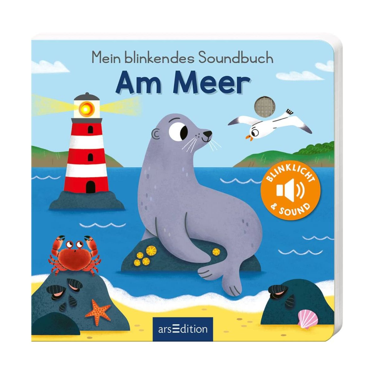 Hörst du die kleine Robbe? Der große Dampfer läuft tutend und blinkend in den Hafen ein. Ein neuer Tag am Meer beginnt! Es gibt so viel zu entdecken: Delfine, Fische und Quallen tummeln sich im Wasser. Am Strand spielen Kinder, plantschen im Wasser und bauen Sandburgen. Und am Abend schauen alle in den Sternenhimmel und lauschen dem Geräusch der Wellen. Schalte das Blinklicht ein und bringe die Sterne zum Leuchten! Ein stimmungsvolles Buch mit liebevoll gereimtem Text, das Kleinkinder ab 12 Monaten spielerisch auf schöne Tage am Meer einstimmt. Urlaubsvorfreude garantiert! Mit Sound und Blinklicht Das innovative Sound- und Lichtbuch bietet ersten Entdeckerspaß und macht die gemeinsame Vorlesezeit perfekt. Die in den Seiten integrierten Soundchips lassen sich bereits durch leichten Druck aktivieren und lösen atmosphärische, realistische Sounds sowie ein leuchtendes Blinklicht aus. Farbenfrohe Bilder und die gereimte Geschichte laden darüber hinaus zum Entdecken und Erzählen ein. Spielerisch werden die Motorik und die Lautbildung gefördert. Ein großer, interaktiver Spaß für Kleinkinder ab 1 Jahr. • Ideal für kleine Kinderhände: Mit dicken Pappeseiten, 6 extraleicht auslösbaren Sounds und strahlendem Blinklicht • Perfekte Förderung von Anfang an: Motorik, Gehör und Lautbildung werden optimal geschult • Angenehme Lautstärke: Perfekt für empfindliche Ohren von Kleinkindern ab 12 Monaten • Ton abschaltbar: Dank des praktischen An- und Ausschalters auf der Buchrückseite lassen sich die Geräusche an- und ausschalten • Batterien auswechselbar: Die Bücher enthalten handelsübliche Knopfzellenbatterien vom Typ LR 1130 mit je 1,5 V, die sich problemlos auswechseln lassen.