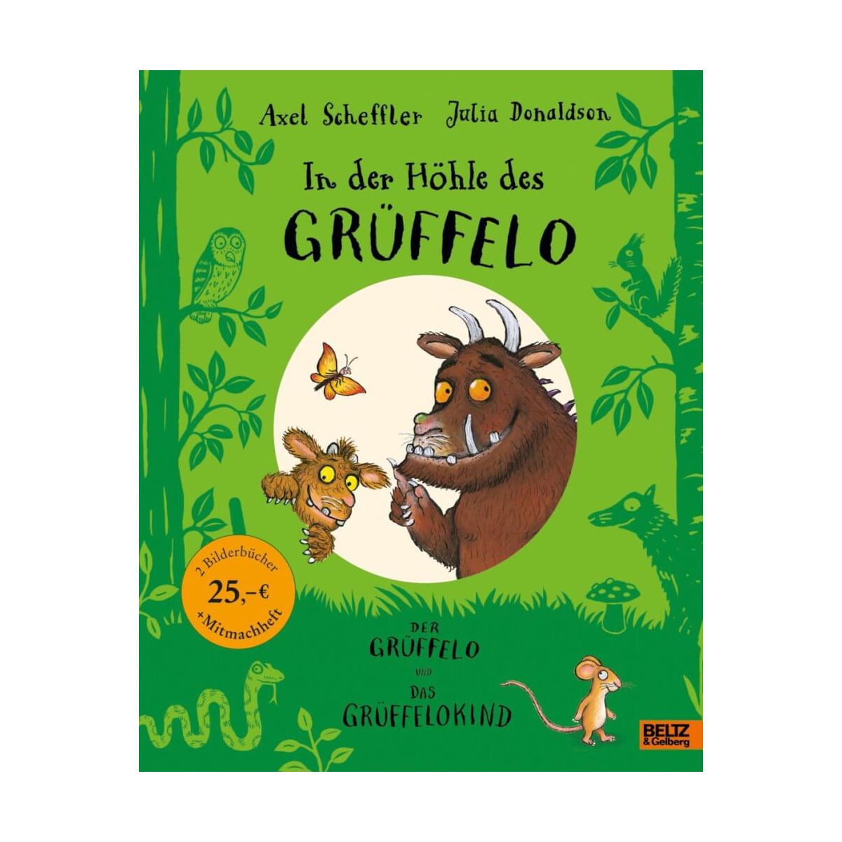 1999 erschien erstmals »Der Grüffelo« – und wurde zu einem der erfolgreichsten Bilderbücher der Welt. Zum 25-jährigen Jubiläum erscheint der Klassiker nun zusammen mit dem »Grüffelokind« in einem Sammelband – begleitet von einem Mitmachheft mit 16 tollen Seiten zum Ausmalen, Raten und Mitmachen. Die berühmte Geschichte vom gefährlichen Grüffelo und der kleinen Maus, die jedem, der sie fressen will, mit dem schrecklichen Grüffelo droht. Und die Folgegeschichte vom Grüffelokind, das sich beherzt und mutig auf die Suche macht, weil es endlich wissen will, ob es die böse Maus wirklich gibt.