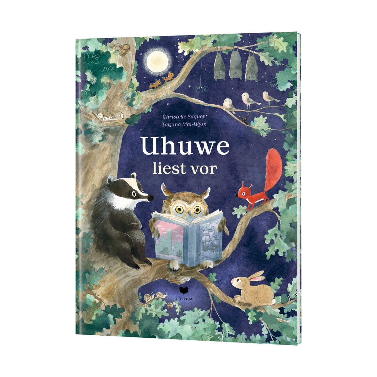 Jeden Abend warten die Waldtiere sehnsüchtig auf den ersten Stern am Himmelszelt. Denn dann beginnt die Vorlesezeit und alle versammeln sich unter der großen Eiche, in der Uhuwe, der weise Uhu, lebt. Seine Freunde und Freundinnen genießen die Geschichten, aber Uhuwes Vorschlag, allen das Lesen beizubringen, stößt auf Unmut. Wie schön ist es doch, wenn einem vorgelesen wird? Und wozu etwas lernen, was ein anderer bereits kann? Doch als Uhuwe eines Tages hustet und vor Heiserkeit keine Gute-Nacht-Geschichten mehr vorlesen kann, ist klar, dass sich etwas ändern muss. Eine besondere Bilderbuchgeschichte, die Lust aufs Lesenlernen weckt und mit Witz und List zeigt, dass es sich lohnt, selbst Dinge zu erlernen. Tatjana Mai-Wyss entführt zur Geschichte von Christelle Saquet mit stimmungsvollen Bildern in den nächtlichen Wald zur Baumbibliothek von Uhu Uhuwe und seinen Freunden. Für alle Fans von „Der Waldbuchclub..