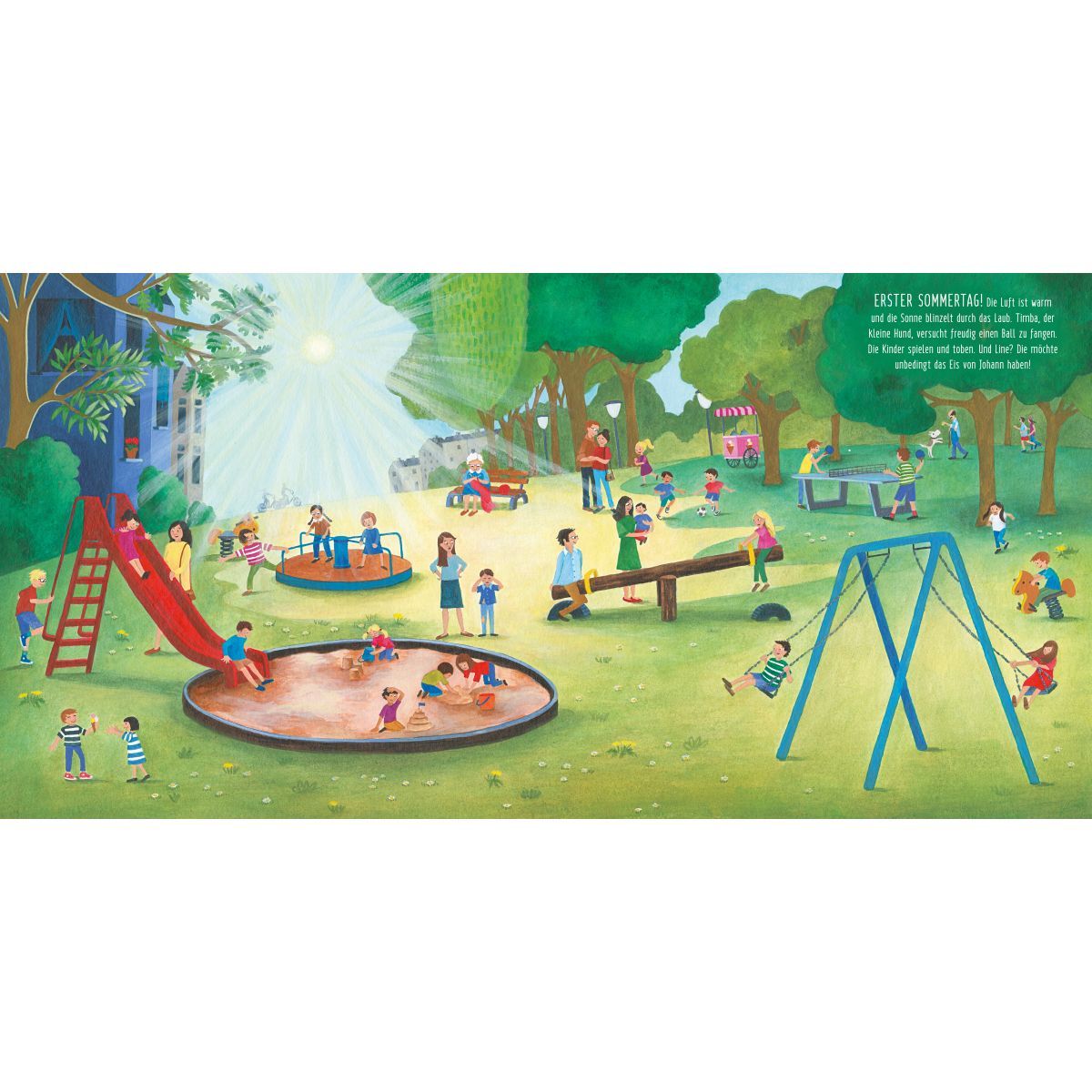 Ein Lieblingsort für jeden Tag, jede Jahreszeit und bei jedem Wetter • Faszinierendes Bilderbuch: Der Spielplatz als bunte Bühne für Frühling, Sommer, Herbst und Winter • Immer wieder Neues entdecken: Kinder, Eltern, Parkbesucher, Tiere und ihre kleine Geschichten entwickeln sich von Seite zu Seite weiter • Perfektes Geschenk: Fördert Beobachtungsgabe, Sprachentwicklung und macht die Vielfalt des Alltags für Kinder ab 3 Jahren erlebbar Dieses Bilderbuch lädt Kinder und Erwachsene ein, einen ganz besonderen Ort immer wieder neu zu erleben: den Spielplatz mit der knallroten Rutsche im Park. Immer mit dem Spielplatz im Zentrum des Bildes erzählt Daniela Chudzinski viele kleine sinnliche Geschichten zum Eintauchen und Miterleben. Dabei gelingt es ihr auf außergewöhnliche Weise, Klein und Groß als Beobachter und Teilhaber des Geschehens einzufangen. Durch das Buch begegnet man immer wieder denselben Kindern, Erwachsenen und Tieren an demselben Ort – und doch ist alles ständig im Wandel. Mal ist der Platz voll, mal leer, das Wetter wechselt, Jahreszeiten ändern sich, Freundschaften entstehen. Und wer genau hinschaut, entdeckt viele liebevolle Details: Ein Schal wird länger, ein Baby ist zur Welt gekommen, ein Eichhörnchen flitzt durchs Bild. So wird jeder Tag besonders – egal ob bei Sonnenschein, Regen oder Schnee. Ein außergewöhnliches Bilderbuch, das zum Entdecken, Staunen und Erzählen einlädt – und zeigt, wie bunt und lebendig unser Alltag ist. Ideal für die Frühförderung, als Geschenk und für gemeinsame Entdeckungsreisen mit der ganzen Familie..