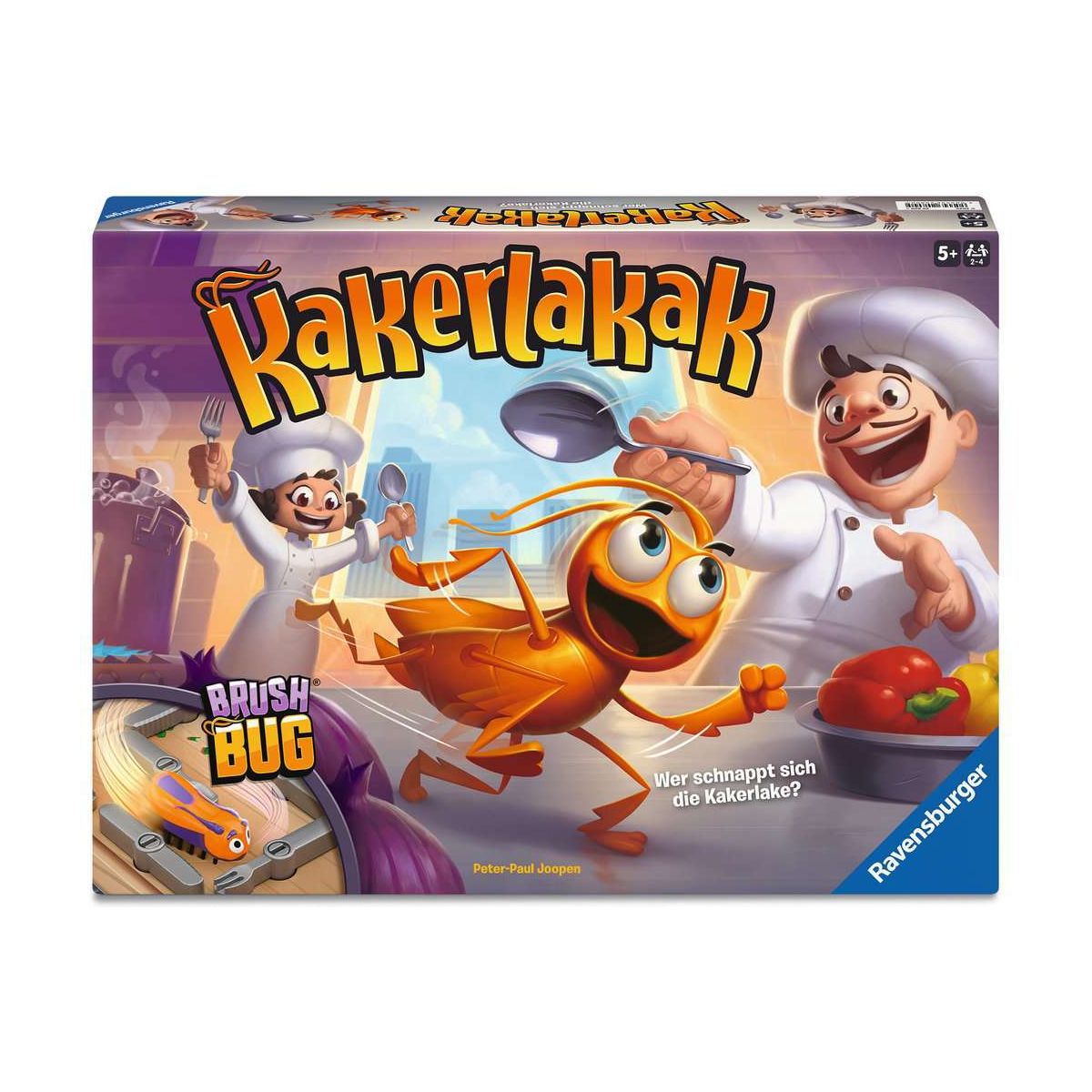 Flink saust die Kakerlake durch die Küche! Jetzt heißt es, keine Zeit zu verlieren. Wer kann sich das herumwuselnde Insekt mit Hilfe des ausliegenden Bestecks schnappen? Der Würfel entscheidet, ob Gabel, Messer oder Löffel gedreht werden. Wird das Besteck geschickt gedreht, kann die Kakerlake in einer Falle gefangen werden. Wem die Kakerlaken-Falle gehört, bekommt einen Chip. Die Jagd auf das lichtscheue Krabbeltier gewinnt, wer zuerst fünf Chips ergattern konnte!Das Ausgangslabyrinth kann bei jeder neuen Spielrunde variiert werden ? letztendlich beweist die Kakerlake aber immer wieder, dass sie einen eigenen Kopf hat und ganz anders abbiegt, als erwartet! Kakerlakak ist eine rasante und lustige Jagd für clevere Fallensteller mit original HEXBUG® nano?. Ausgezeichnet mit mehreren Preisen, unter anderem mit dem Deutschen Spielepreis als Bestes Kinderspiel 2013..