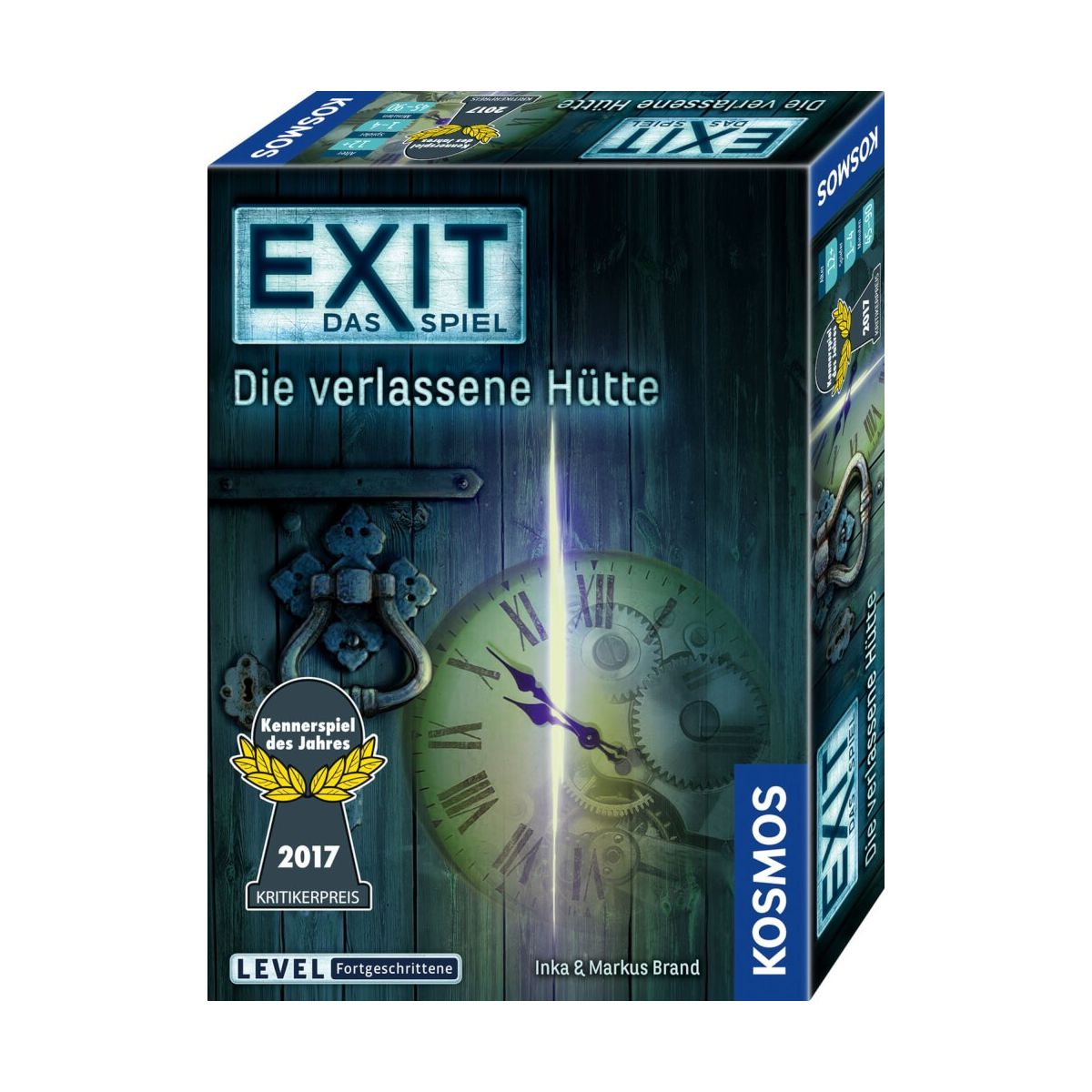 Eigentlich sollte die Hütte nur als Unterschlupf für eine Nacht dienen. Aber am Morgen ist die Tür plötzlich mit einem Zahlenschloss gesichert. Die Kombination der Zahlen ist euch unbekannt. Die Fenster sind vergittert. Eine rätselhafte Drehscheibe und ein geheimnisvolles Buch scheinen ein erster Hinweis zu sein. Schafft ihr es gemeinsam damit aus der Hütte zu flüchten? Mit der Reihe ?EXIT® ? Das Spiel? bringt KOSMOS das Gefühl der Live-Escape-Rooms zu euch nach Hause. Jede Box bietet einer Gruppe von 1 bis 4 Personen ein außergewöhnliches Spielerlebnis für einen einmaligen und absolut unvergesslichen Abend! Der Wettlauf gegen die Zeit und die cleveren Rätsel dieser innovativen Spielreihe sorgen für Spannung und geistige Herausforderung in den eigenen vier Wänden. Um die Rätsel zu lösen und sich somit gemeinsam aus der misslichen Lage zu befreien ist Teamgeist gefragt! Also arbeitet gut zusammen, denn die Zeit läuft? Live-Escape-Feeling im Fortgeschrittenen-Level. Inhalt: 1 Buch, 1 Decodier-Scheibe, 22 Rätsel-Karten, 30 Lösungs-Karten, 33 Hilfe-Karten, 3 seltsame Teile, 1 Spielanleitung.