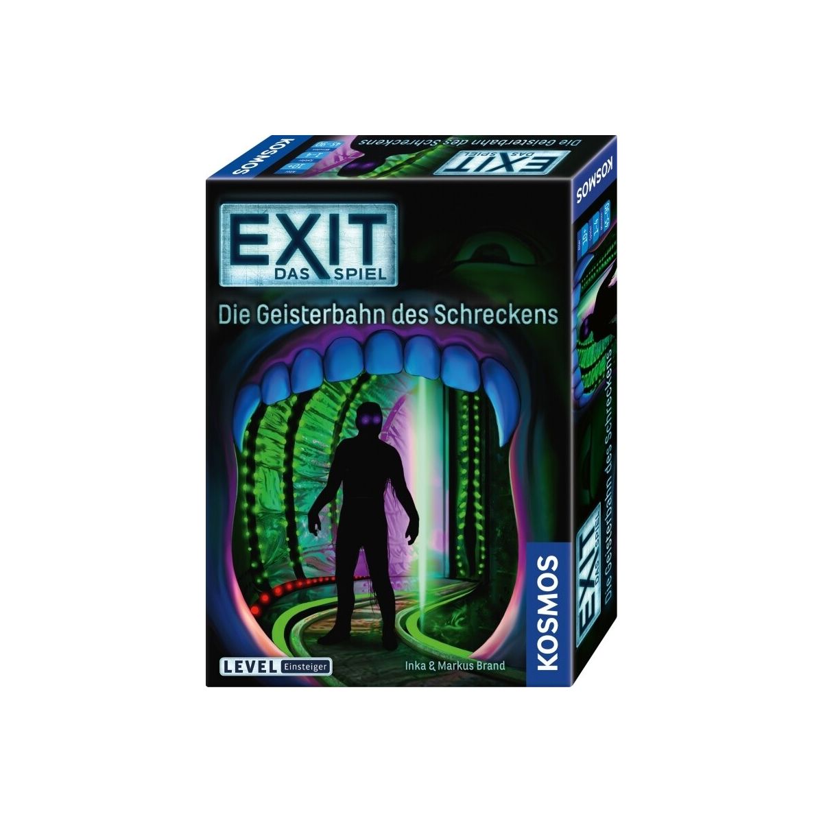 Gruselspaß der besonderen Art: Lust auf eine Runde in der Geisterbahn? Gerne ? was aber, wenn diese plötzlich nicht mehr weiterfährt und ihr in der Kulisse stecken bleibt? Dann wird es höchste Zeit, sich auszutauschen und zusammenzuarbeiten, um dem Ort des Schreckens schnellstmöglich wieder zu entfliehen. Wer die Rätsel lösen kann, wird mit der Freiheit belohnt. Mit der Reihe ?EXIT® ? Das Spiel? bringt KOSMOS das Gefühl der Live-Escape-Rooms zu euch nach Hause. Jede Box bietet einer Gruppe von 1 bis 4 Personen ein außergewöhnliches Spielerlebnis für einen einmaligen und absolut unvergesslichen Abend! Der Wettlauf gegen die Zeit und die cleveren Rätsel dieser innovativen Spielreihe sorgen für Spannung und geistige Herausforderung in den eigenen vier Wänden. Um die Rätsel zu lösen und sich somit gemeinsam aus der misslichen Lage zu befreien ist Teamgeist gefragt! Also arbeitet gut zusammen, denn die Zeit läuft? Live-Escape-Feeling im Einsteiger-Level. Inhalt: 1 Decodier-Scheibe, 88 Karten, 8 seltsame Teile, 1 Buch, 1 Spielanleitung.