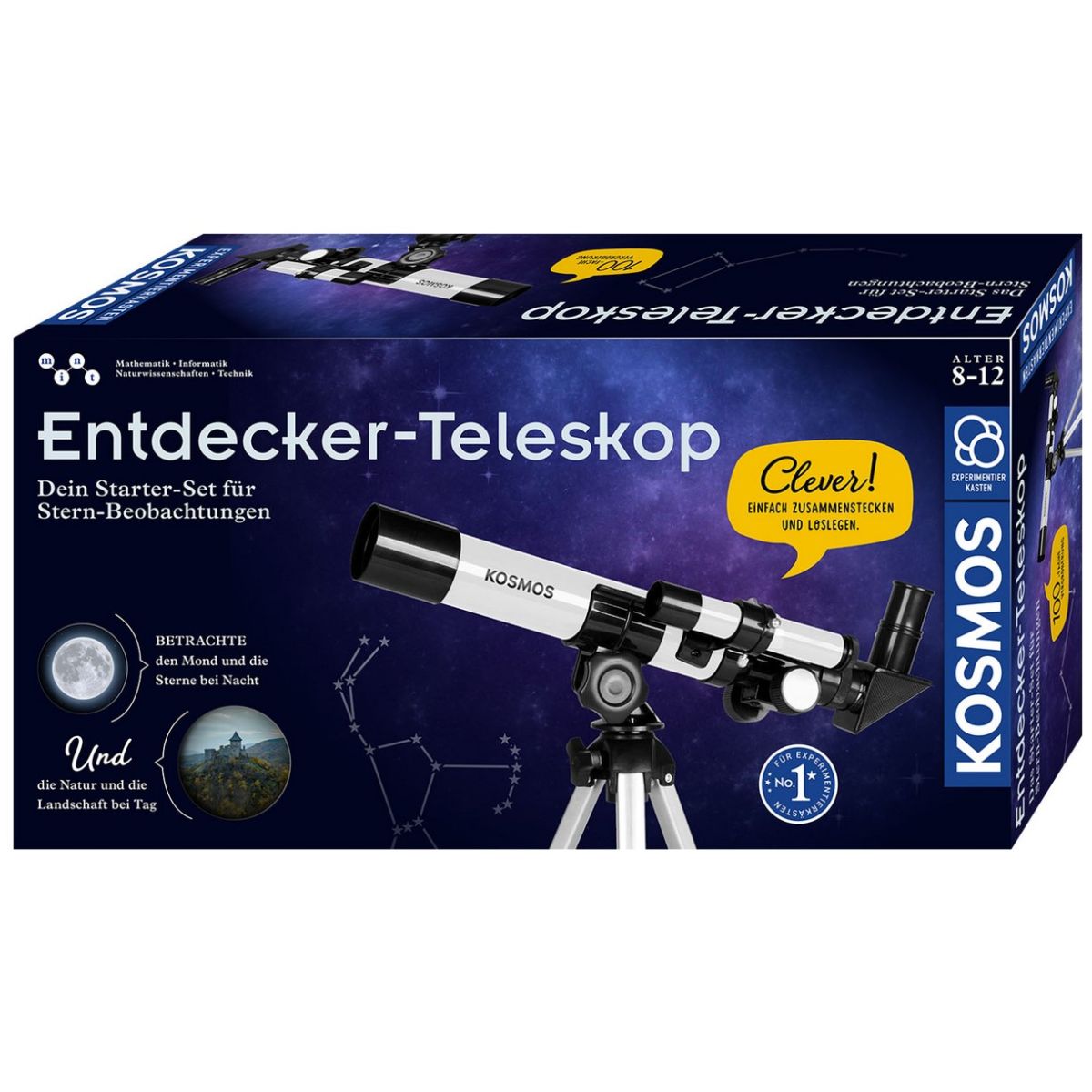 Ob bei Tag oder Nacht, ob in der Natur oder in der Stadt, die zwei Okulare des Entdecker-Teleskops holen die Umgebung in 20- oder sogar 100-facher Größe heran und bieten für Kinder genau den richtigen Einstieg. Mit wenigen Handgriffen ist es aufgebaut und wieder verstaut. Und mit dem integrierten Kompass findet man sogar bei Nacht direkt Sternbilder, Kometen oder Planeten ? Mondfilter inklusive! Das zusätzliche Sucherfernrohr erleichtert die Orientierung, sodass auch Erst-EntdeckerInnen direkt durchstarten können. Dazu die handliche Größe für unterwegs ? ein tolles Gesamtpaket für die ersten Schritte in die Welt der Astronomie..