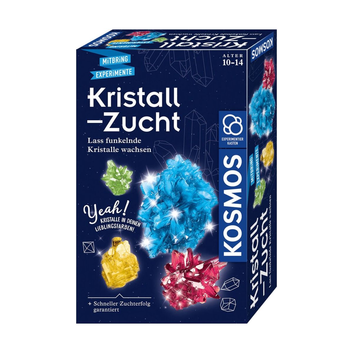 Blau, rot, gelb ? in wunderschönen Farben glitzern mit diesem KOSMOS Experimentierset schon bald die schönsten Kristalle in unterschiedlichen Formen im Kinderzimmer. Wie von Zauberhand entstehen die kleinen und großen Einzelstücke innerhalb weniger Tage aus Wasser, Farbe und Kristallsalz. In der transparenten Schatztruhe lassen sich die schönsten Kristalle besonders wirkungsvoll präsentieren. Damit alles klappt, erklärt die Anleitung Schritt für Schritt den richtigen Umgang mit Pipette und Co. und zeigt genau wie die Kristallsalze aufgelöst werden. Spannende Zusatz-Infos über Kristalle und wie sie in unserem Alltag Verwendung finden bieten Kindern ab 10 Jahren einen ersten Einblick in die Welt der Chemie..