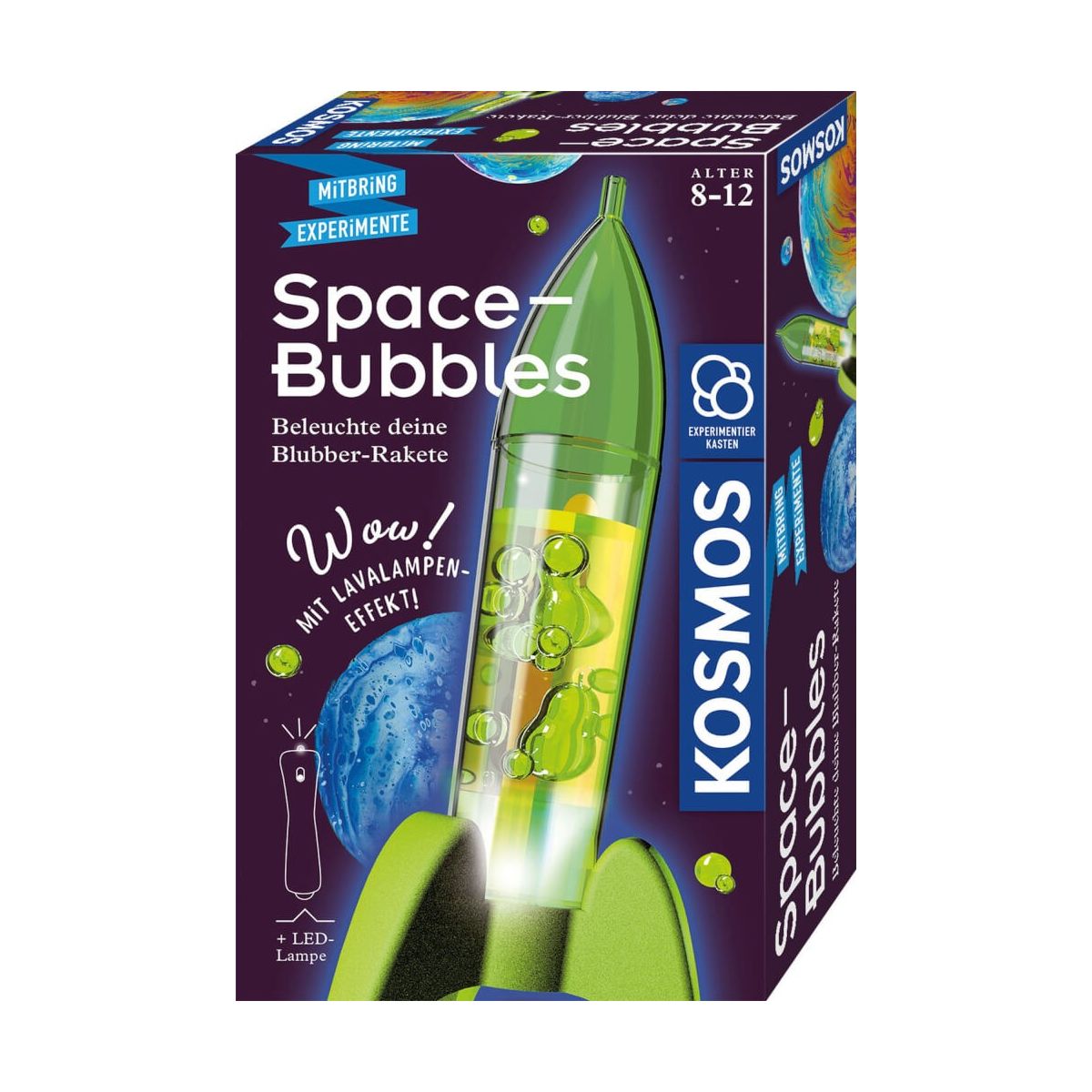 Coole Action im Kinderzimmer: In diesem KOSMOS Experimentierset wird eine Raketenbasis zur Experimentierstation für faszinierende Blubber-Effekte! Dafür die Raketenbasis nach der Anleitung mit Öl und farbigem Wasser auffüllen und eine Brausetablette in die Mischung geben ? schon kann der Spaß beginnen! Im Faltblatt erfahren kleine Forscher, wie Blubber-Blasen überhaupt entstehen, warum sie auf- und absteigen und wie dabei die tollen Farbeffekte entstehen. Das geht übrigens auch im Dunkeln! Dafür die LED-Lampe anschließen und die leuchtende Blubber-Rakete verwandelt sich in eine geniale Lavalampe! So oft die Kinder möchten, lassen sich die Versuche wiederholen. Einfach den Blasen zusehen und über das leuchtende Wunder staunen! Das perfekte Geschenk für Kinder ab 8 Jahren mit Spaßgarantie..