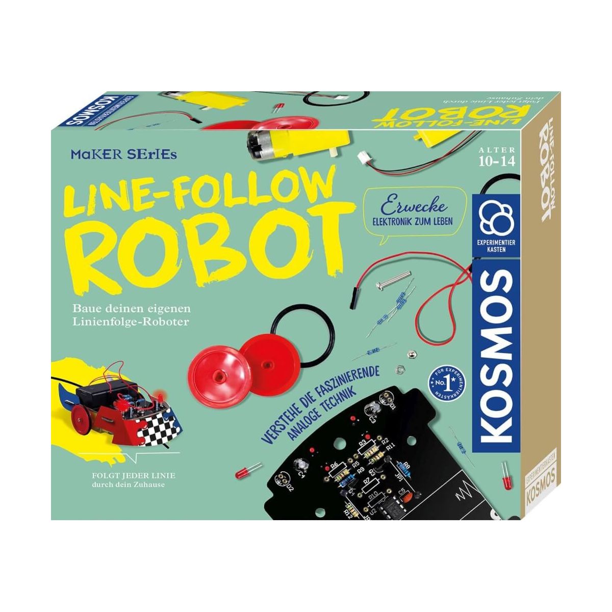 Die Challenge: Einen Roboter konstruieren, der ganz von alleine einer Linien folgen kann! Genau die richtige Aufgabe für Nachwuchs-Maker, denn je nach Einstellung der elektronischen Bauteile verändert der Roboter sein Verhalten. Wenn alles klappt, folgt er mit seinem Motor und den Rädern einer schwarzen Linie und will herausgefordert werden. Schafft er auch Kurven? Eine echte Knobelaufgabe! Das Besondere an diesem Roboter: Durch ihn wird greifbar, dass auch analoge Elektronik dazu in der Lage ist, Umweltreize zu verarbeiten - ganz ähnlich wie Motten, die zum Licht fliegen. So lernen Kinder zwischen zehn und 14 Jahren beim Konstruieren mit dem KOSMOS Bausatz nicht nur eine Menge über Widerstände, LEDs und Potentiometer, sondern auch, welche Parallelen es zu anderen Welten gibt!.