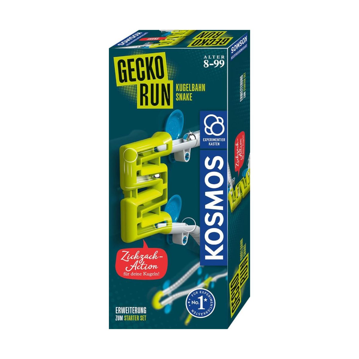 Wie gut schlängelt sich die Kugel durch den Zick-Zack-Kurs? Mit der Snake-Erweiterung bekommt die Gecko Run Kugelbahn ein neues, spannendes Trick-Element dazu! Schafft es die Kugel sicher wieder heraus? Und wie wirkt sich der plötzliche Tempowechsel aus? Spannende neue Fragen, die die Kinder ab acht Jahren austüfteln können! Die Anleitung gibt den ersten Kick mit Ideen für die Tricks. Das tolle Extra: Zusätzliche Bahn-Elemente vergrößern die Reichweite der KOSMOS Kugelbahn! Hinweis: nur mit dem Gecko Run ?Starter Set? oder der ?Big Box? spielbar..