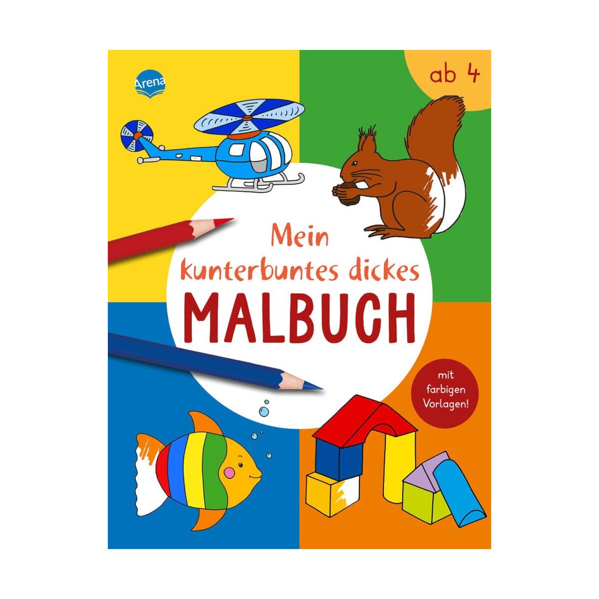 An die Stifte, fertig, los! In diesem dicken Malbuch können Kinder ab 4 Jahre nach Herzenslust ausmalen. Die Motive sind aus dem Alltag der Kinder bekannt und die farbigen Vorlagen helfen bei der Farbauswahl. Welche Farbe hat der Marienkäfer? Welche Farbe bekommt der Bauklotz? Und muss das Feuerwehrauto immer rot sein? Egal, du malst dir die Welt einfach kunterbunt! Das große Format gibt viel Freiheit für die eigene Kreativität beim Malen. Die einfachen Umrisse sind auf das Alter abgestimmt und das dicke Papier eignet sich bestens für Buntstifte, Wachsmaler und Filzstifte. Kunterbunter Malspaß. – Altersgerechte Motive für Kinder ab 4 Jahre – Für Buntstifte, Filzstifte und Wachsmalstifte geeignet – Viel Malspaß für 5 Euro.