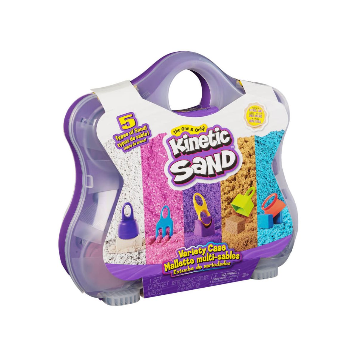In einer zunehmend digitalen Welt bekommt das haptische Spielen eine immer größere Bedeutung. Kinder müssen Dinge im wahrsten Sinne des Wortes begreifen lernen. Das tun sie, indem sie Dinge anfassen und damit experimentieren können. Am Besten ohne vorgeschriebene Anleitung, sondern frei ihrer Fantasie folgend. Der Kinetic Sand Farbspielkoffer bietet Neon-Sand in Lila und Blau, schimmernden rosa Sand, weißen Sand und grobkörnigen Strandsand in Naturbraun. Mit den fünf enthaltenen Werkzeugen kann nach Herzenslust geformt, gemischt, gestapelt oder gehobelt werden. Auch das Zerfließen lassen, bei dem die besondere Textur von Kinetic Sand bestens zur Geltung kommt, ist faszinierend und entspannend zugleich. Beim Spielen trainieren Kinder nicht nur ihre Fantasie, sondern auch Tastsinn und Feinmotorik sowie den Gebrauch von Werkzeugen. Auch Formen werden spielerisch erlernt, ebenso wie das Mischen von Farben. Farbennachschub gibt es mit den 907 g Kinetic Sand Beuteln, die in Naturbraun, Rot, Blau, Lila und Grün sowie Shimmer Rosa alle separat erhältlich sind..