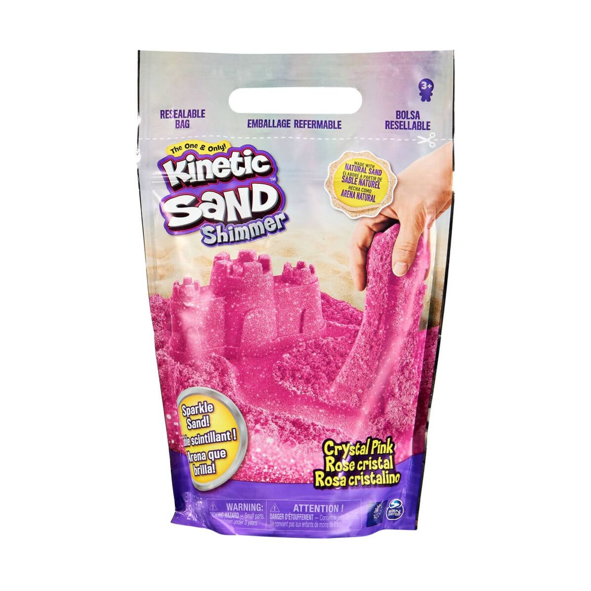 KNS Glitzer Sand Crystal Pink (907g Fix3 Original Kinetic Sand aus Schweden in schimmerndem Rosa beflügelt die Fantasie zu immer wieder neuen Kreationen. Ob fantasievolle Tiere, Törtchen oder märchenhafte Schlösser, Kinetic Sand kann zu allem werden und das immer wieder aufs Neue, weil er nicht austrocknet. Kinetic Sand haftet magisch an sich selbst und besitzt daher eine besondere fließende Struktur und Formbarkeit. Förmchen, separat erhältlich, bilden sich gestochen scharf ab und bieten Kindern daher ein Erfolgserlebnis. Das Spielen mit Kinetic Sand trainiert die Entwicklung des Tastsinns, der Feinmotorik und der Kreativität. Den Sand einfach durch die Hände fließen lassen entspannt Kinder und Erwachsene gleichermaßen. Inhalt: 907 g Kineitc Sand Rosa schimmernd im wiederverschließbaren Beutel Maße: 18,41 x 6,35 x 27,31 cm.