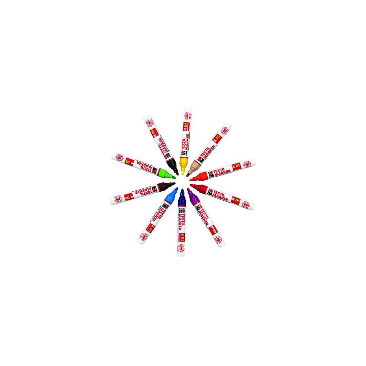 STOFF FÜR TRÄUME. Ein T-Shirt mit dem eigenen Namen oder dem Lieblings-Comic-Helden: Mit Marabu KIDS Textil Markern in 10 leuchtenden Farben (Blau, Gelb, Grün, Schwarz, Rot, Braun, Pink, Lila, Orange, Rosé Beige) werden Basics aus Baumwolle zu Einzelstücken, die es so kein zweites Mal gibt! Leuchtende Textilmalstifte für kreative Designs auf T-Shirts, Basecaps, Taschen und anderen Accessoires. Zum Bemalen von hellen, appretur- und weichspülerfreien Textilien bis max. 20 % Kunstfaseranteil. Nach Fixierung waschbeständig bis 60 °C. Liegend aufbewahren. Fixierung: Nach dem Trocknen von links jede Stelle 3 Min. bei Baumwolltemperatur bügeln oder im vorgeheizten Backofen (8 Min./150 °C) fixieren..