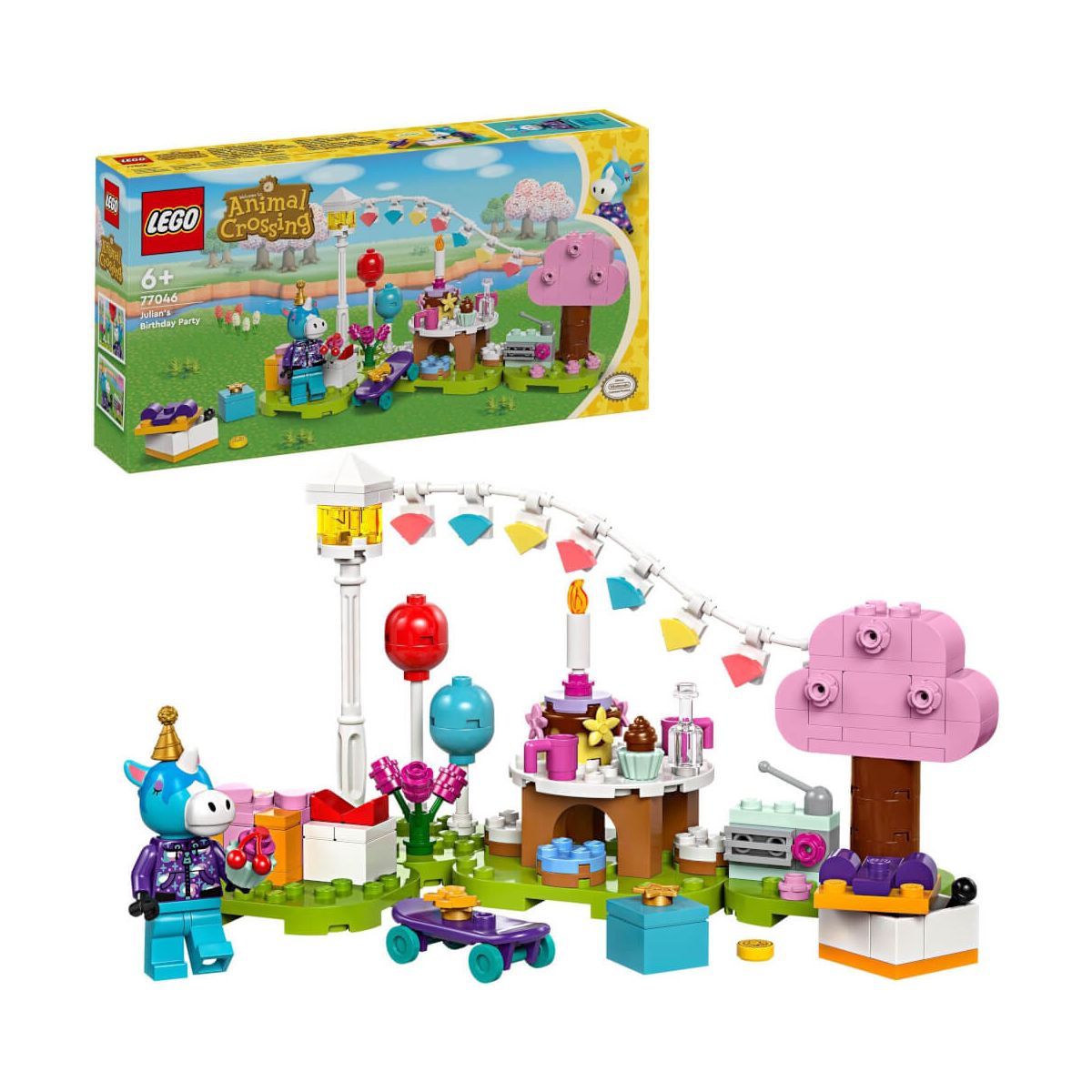 LEGO Animal Crossing Jimmys Geburtstagsparty (77046) lässt kreative Kinder ab 6 Jahren unzählige Szenen aus ihrer liebsten Videospielserie nachstellen. Dieses kreative Spielzeug zum Umgestalten beinhaltet jede Menge zauberhafte und aus der Videospielreihe vertraute Zubehörelemente, die Kinder viele spannende Geschichten darstellen lassen. Kinder schmeißen eine Party für das Pferd Jimmy aus den Animal Crossing Spielen, das Mädchen und Jungen wegen seines Einhorn-Designs entzücken wird. Die Kinder schenken Jimmy unter anderem ein Mikrofon und eine Sterni-Münze. Während Jimmy die Kerze auf seiner Geburtstagstorte ausbläst, verteilen sie Cupcakes. Nach der Party kann dein Kind die baubare Szene umgestalten, die Bauplatten verschieben und die Ballons, Girlanden und Zubehörelemente anders verteilen. Mit diesem LEGO Tiere Set können Kinder genauso kreative Szenen gestalten wie in der Videospielreihe Animal Crossing. Dieses Bauspielzeug aus Modulen ist ein tolles Animal Crossing Geschenk für Fans von Jimmy. Für unbegrenzte weitere Spielmöglichkeiten muss man dieses Kinderspielzeug nur mit den anderen kreativen LEGO Animal Crossing Sets kombinieren. In seiner Standardkonfiguration ist Modell 9 cm hoch, 17 cm breit und 10 cm tief. Enthält 170 Teile..
