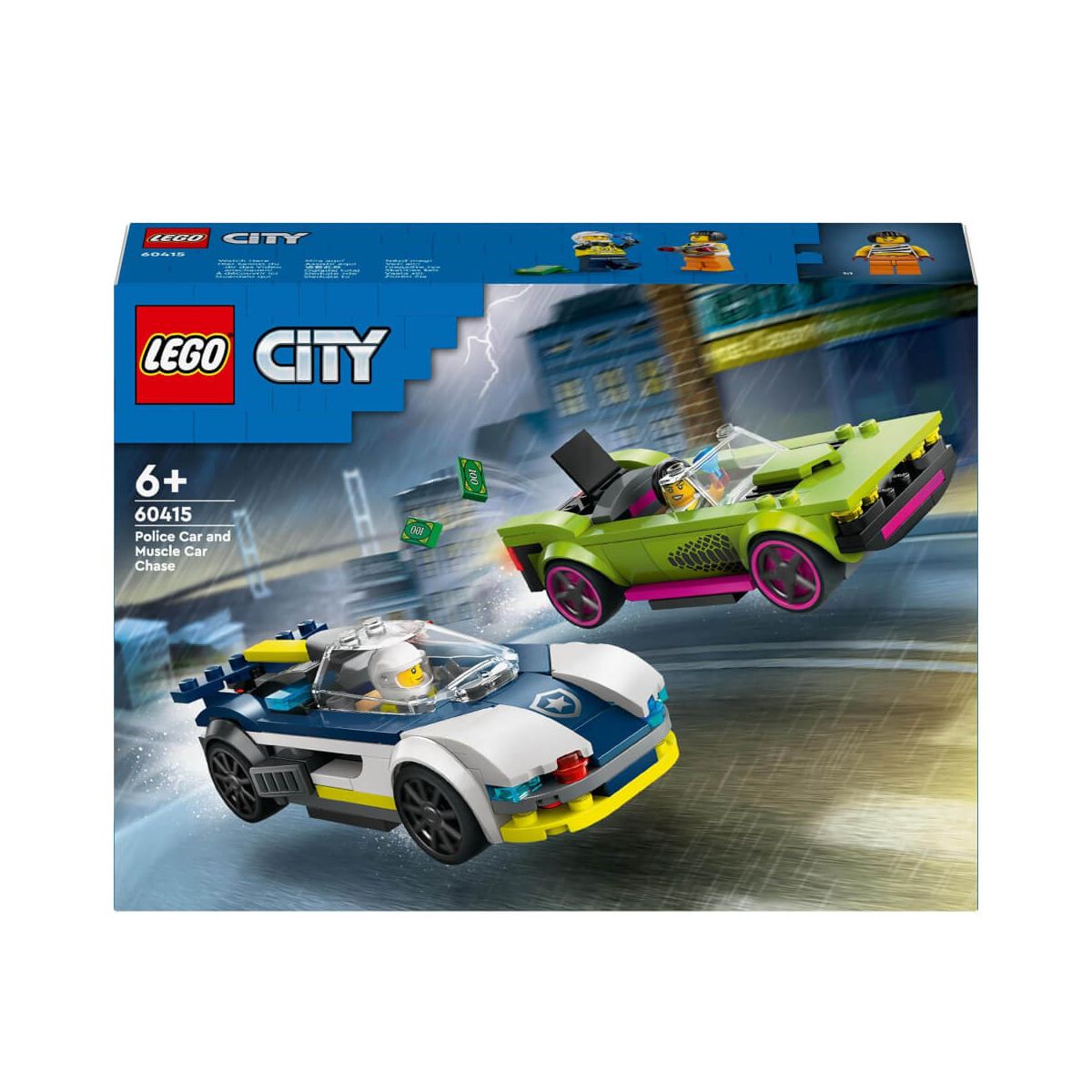 LEGO City Verfolgungsjagd mit Polizeiauto und Muscle (60415) ist ein Polizei-Spielzeug mit 2 Spielzeug-Autos, das Kindern ab 6 Jahren ein aufregendes Spielerlebnis bietet. Mit diesem Bauset können können die beiden 2 Spielzeug-Rennautos bauen und sie dann in eine spannende Verfolgungsjagd schicken. Ein cooles LEGO City Spielzeug-Polizeiauto und ein Fluchtfahrzeug sowie 2 Minifiguren, darunter ein Polizist und eine Ganovin, laden zu spannenden Rollenspielen und Abenteuern ein. Zu diesem Fahrzeug-Spielzeug ist neben einer verständlichen Bildanleitung auch eine intuitive Schritt-für-Schritt-Anleitung in der LEGO Builder App verfügbar. Digitale Funktionen lassen dein Kind beim Bauen virtuelle Modellansichten vergrößern, drehen und näher betrachten. Mithilfe der App kann dein Kind aber auch seinen Baufortschritt verfolgen sowie virtuelle Spielsets erkunden und speichern. Deine Stadt, keine Limits! LEGO City Polizei Sets sind perfekte Auto-Geschenke für Kinder, die gern Vebrecher jagen und rasante Autorennen lieben. Detailreiche Gebäude, wirklichkeitsgetreue Fahrzeuge und faszinierende Figuren lassen Kinder die Welt näher erkunden, indem sie das echte Leben in Form von spannenden Geschichten und Szenarien nachstellen. Verschenke dieses LEGO City Auto-Spielzeug für Kinder zum Geburtstag, zu Ostern oder Weihnachten. Das Polizeiauto ist 4 cm hoch, 14 cm lang und 5 cm breit. Enthält 213 Teile..