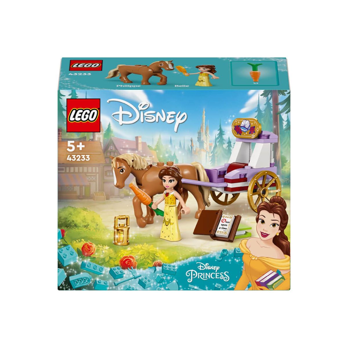 LEGO Disney Princess Belles Pferdekutsche (43233) ist ein Pferd-mit-Kutsche-Spielzeug, das Kinder ab 5 Jahren Geschichten rund um die Disney Prinzessin Belle erfinden lässt. In der Box befindet sich eine Kutsche mit Sitz und Kofferraum für 2 Bücher, einen Laternenhaken und weitere Elemente. Mit diesem Prinzessin-Spielzeug kann dein Kind seine Begeisterung für magische Geschichten ausleben und in die Rolle einer Prinzessin schlüpfen. Die LEGO Disney Belle-Puppe und die LEGO Disney Pferdefigur von Philippe sowie die beiden Ringe zum Sammeln mit austauschbaren Verzierungen laden sofort zum Spielen ein. Die LEGO Disney Prinzessin-Kutsche eignet sich perfekt für kurze tägliche Spielabenteuer und lässt sich für noch mehr Spielspaß mit anderen separat erhältlichen LEGO Disney Bausets kombinieren. Ein zusätzliches digitales Erlebnis und ein intuitives Bauabenteuer bietet die LEGO Builder App. Mit den enthaltenen Funktionen können Kinder 3D-Modellansichten vergrößern und drehen, Sets speichern und den Baufortschritt verfolgen. Dieses Disney Prinzessinnen Set mit Figuren lässt Kinder kreative Geschichten darstellen und bei spannenden Rollenspielen Selbstvertrauen entwickeln. Kinder, die Pferde-Figuren und Die Schöne und das Biest-Spielzeug lieben, werden sich über dieses kleine Disney-Geschenk für 5-jährige Mädchen und Jungen freuen. Die baubare Kutsche ist 7 cm hoch, 14 cm lang und 4 cm breit. Enthält 62 Teile..