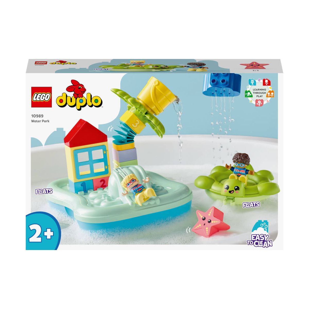 Du suchst nach dem besten Badewannenspielzeug für ein Kleinkind ab 2 Jahren? Die LEGO DUPLO Town Wasserrutsche (10989) lässt dein Kind auch in der Badewanne fröhlich spielen, lernen mit der farbenfrohen Wasserrutsche. Kleine Wasserratten lernen erste Zahlen und wie man Wasser ganz gezielt ausgießt. Außerdem lässt sich dieses Set mühelos reinigen und aufbewahren. Lustiger Badespaß erwartet kleine Kinder mit diesem kreativen und fördernden Wasserspielzeug. Die flexible Palme wird aus drei nummerierten Zahlensteinen (1, 2 und 3) zum 'Wachsen' gebracht und hat einen zugehörigen Eimer, mit dem Kinder Wasser schöpfen und den kleinen Badegast mit Wasser bespritzen können. Die LEGO DUPLP Figur kann zudem auch die Wasserrutsche hinuntersausen sowie mit dem niedlichen Schwimmring in Form einer Schildkröten-Tierfigur und der Seestern-Tierfigur spielen. Zum Zubehör gehört auch eine Wolke, die, wenn dein Kind sie mit Wasser befüllt, auf die anderen Spielsachen herabregnet. Wenn die Badezeit vorbei ist, öffnet sich der Schwimmring, sodass Erwachsene ihn problemlos abtrocknen können, um ein hygienisch sauberes Badespielzeug zu gewährleisten. LEGO DUPLO Badespielzeuge für Kinder sind so konzipiert, dass Erwachsene an der freudigen Entdeckungsreise ihrer Kinder teilhaben können. Dieses LEGO DUPLO Town Wasserrutsche Set lässt Kleinkinder eine unvergessichliche Badezeit voller Spielspaß und Abenteuer haben und macht es zu einem tollen Geschenk für kleine Jungen und Mädchen ab 2 Jahren. Dieses Spielset ist 22 cm hoch, 25 cm breit und 19 cm tief. Enthält 19 Teile..