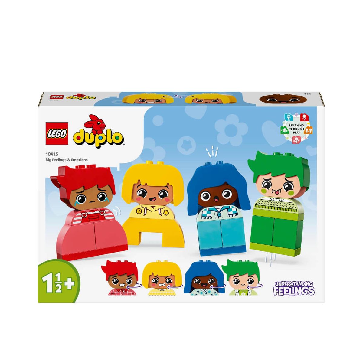 LEGO DUPLO Große Gefühle (10415) ist ein Lernspielzeug ab 1 Jahren , das Kleinkinder ihre Emotionen entdecken lässt. Das Stapelspielzeug beinhaltet 4 verschiedene DUPLO Figuren mit jeweils 2 unterschiedlichen Gesichtern, damit Vorschulkinder die Miene der Spielzeug-Figuren verändern und so, ihre Gefühle ausdrücken können. Neugierige Kleinkinder erkennen schnell, dass Menschen ganz unterschiedlich aussehen können. Dieses inklusive Spielzeug lässt Kinder erkunden, wie sehr sich zwei Menschen voneinander unterscheiden können. Wenn Kleinkinder die bunten DUPLO Steine aufeinanderstecken, um die LEGO DUPLO Menschen-Figuren zu bauen, entwickeln sie Kreativität und Fingerfertigkeit. Außerdem hat dein Kind die Wahl, ob es die Haare und die Kleidung der Figuren mit farblich übereinstimmenden oder kontrastierenden Steinen darstellt. LEGO Motorik-Spielzeug beinhaltet Steine in unterschiedlichen Formen, die kleine Finger faszinieren werden. Mit diesem LEGO DUPLO Stapelspiel lernen kreative Köpfe über Diversität und Gefühle während sie unendlich kreativ spielen. Es ist ein lustiges Geschenk für Kinder ab 18 Monaten. Die LEGO DUPLO Figuren sind 12 cm groß. Enthält 23 Teile..
