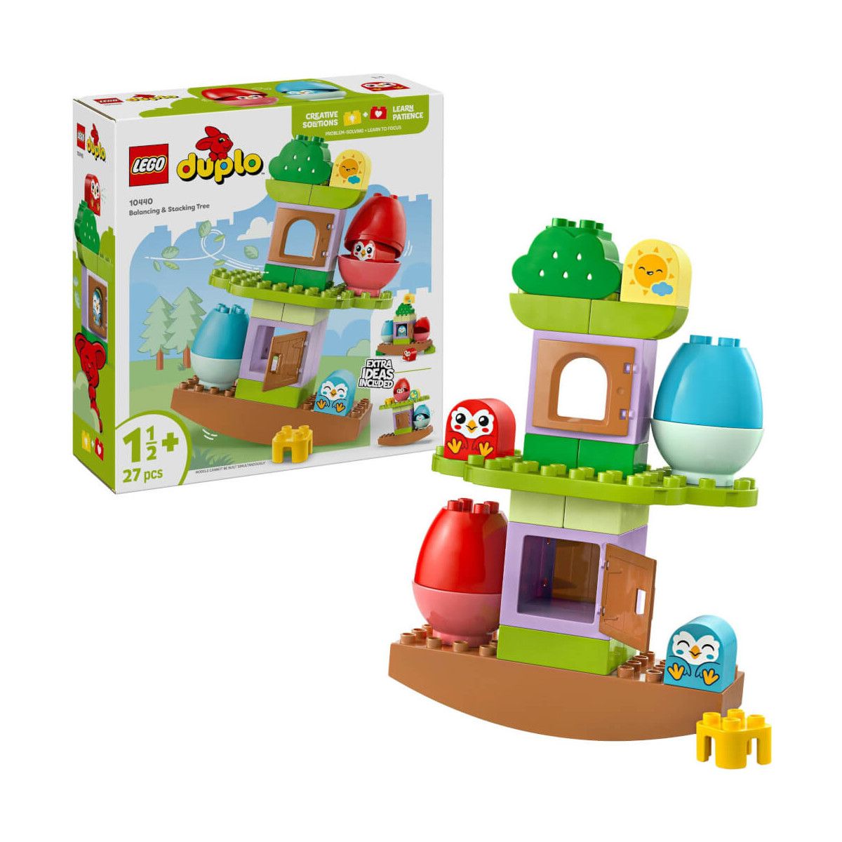 Der LEGO DUPLO Baum zum Balancieren und Stapeln (10440) ist ein liebevoll gestaltetes Lernspielzeug für Babys und Kleinkinder ab 18 Monaten. Mit niedlichen Eulen, farbenfrohen Bausteinen und einem wackeligen Baumhaus lädt dieses kreative Set zum Stapeln, Zuordnen und Entdecken ein. Beim Spielen lernen Kinder auf spielerische Weise, wie Gleichgewicht funktioniert. Sie probieren aus, wie sie die Elemente balancieren oder stabilisieren können – ein spannendes Motorikspielzeug, das Geduld, Konzentration und Problemlösungsfähigkeiten fördert. Das Set enthält LEGO DUPLO Tierfiguren, darunter zwei süße Eulen, sowie griffige Schalen und Eier zum Öffnen und Sortieren. Dabei trainieren Kleinkinder ihre Fingerfertigkeit und lernen Farben zu erkennen und zuzuordnen – ein tolles pädagogisches Spielzeug, das auch beim Farbenlernen unterstützt. Mit dem Tag-und-Nacht-Stein entdecken Kinder, dass Eulen nachtaktiv sind. So lassen sich kleine Geschichten erzählen, die das Spiel noch lebendiger machen – toll als Rollenspielzeug und zum gemeinsamen Spielen mit Erwachsenen. Dieses LEGO DUPLO Spielset eignet sich wunderbar als Geschenk für Babys ab 18 Monaten – egal ob Mädchen oder Jungen. Ob als Babyspielzeug, Tier Spielzeug oder Baumhaus Spielzeug: Es regt die Fantasie an, unterstützt die Entwicklung und macht einfach Spaß. Das Baumhaus lässt sich vielseitig umgestalten und ist 28 cm hoch, 31 cm breit und 9 cm tief. Enthält 27 Teile..