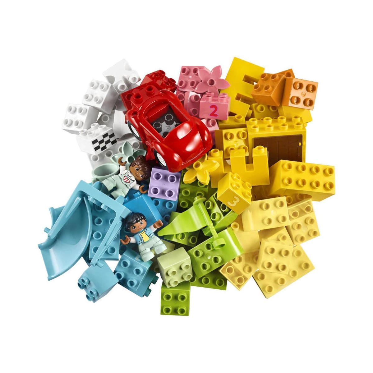 Die vielseitige und abwechslungsreiche Deluxe Steinebox (10914) von LEGO DUPLO inspiriert Babys und Kleinkinder zu endlosen kreativen Spielen und fördert die frühkindliche Entwicklung mit farbenfrohen LEGO-DUPLO-Steinen und besonderen Teilen, die junge Baumeister begeistern und beschäftigen. In der stabilen Aufbewahrungsbox lassen sich Anregungen und Ideen finden, die Kleinkinder ab 1,5 Jahren ansprechen und begeistern. Es gibt viel zu entdecken: Die Kreativbox enthält ein Auto, Fenster, Blumen, Luftballons, Geschenke, eine Torte, Steine mit den Nummern 1 bis 3 für Zahlenspiele und natürlich eine große Auswahl an LEGO-Steinen in allen Farben des Regenbogens! Die Lernspielzeuge von LEGO DUPLO für Babys und Kleinkinder regen mit ihren farbenfrohen, leicht zu greifenden Teilen die Fantasie an und laden zu endlosen Spielen ein, bei denen Vorschulkinder die kreative Kontrolle übernehmen können. _ Enthält 85 Teile..