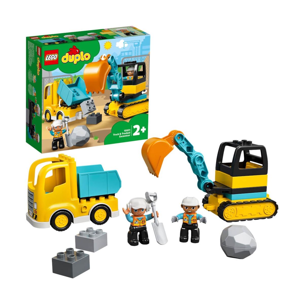Die 2 Bauarbeiterfiguren, der Spielzeugkipplaster und der Spielzeugbagger mit der drehbaren Schaufel bieten Eltern und Kleinkindern ab 2 Jahren alles, was sie brauchen, um an die Arbeit zu gehen. Während sie die Baufahrzeuge steuern und bedienen, um verschiedene Aufgaben auf der Baustelle zu erledigen, wird die Feinmotorik der Kinder gefördert. Das Set enthält einen Spielzeugfelsen, der in den Laster geschaufelt werden kann. Aber Vorsicht, der Felsbrocken kann leicht auseinanderbrechen! Das Spielzeugset ?Bagger und Laster? (10931) von LEGO DUPLO regt kleine Baumeister zu endlosen Spielen an. Die LEGO-DUPLO-Spielzeug-Bausets wurden speziell dafür entwickelt, Kinder im Vorschulalter zum Spielen anzuregen und ihre frühkindliche Entwicklung und Feinmotorik zu fördern. Für noch mehr Spielspaß können die Sets miteinander kombiniert werden. Der Laster ist 11 cm hoch, 14 cm lang und 7 cm breit. Der Bagger ist 12 cm hoch, 18 cm lang und 7 cm breit..