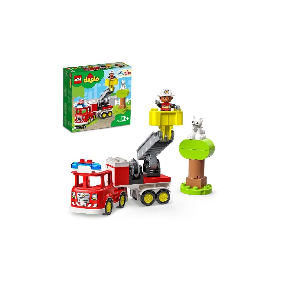 Kinder mit einer Faszination für Feuerwehr-Spielzeuge werden vom dem LEGO DUPLO Feuerwehrauto (10969) für Kinder ab 2 Jahren begeistert sein. Alles beginnt mit einer Katze, die hoch oben auf einem hohen Baum feststeckt. Das Feuerwehrauto mit Sirene und Licht rast zum Einsatzort (Batterien im Lieferumfang enthalten). Der kleine Held kann die Katze herunterbringen, dann den Wasserschlauch herausziehen und ihm etwas Wasser zum Trinken geben. Mit einem niedlichen Tier, das es zu retten gibt und einem freundlichen Feuerwehrmann in einem funktionsreichen Feuerwehrauto, hilft dieses Spielset Kindern im Vorschulalter, sich selbst auszudrücken, während sie die realen Abenteuer eines Alltagshelden nachspielen. Eltern können wertvolle Entwicklungsmomente miterleben, da LEGO DUPLO Motorikpielzeuge für Kleinkinder zur Entwicklung sozialer, emotionaler und feinmotorischer Fähigkeiten beitragen. Das Feuerwehrauto ist 17 cm hoch, 28 cm lang und 17 cm breit. Enthält 21 Teile..