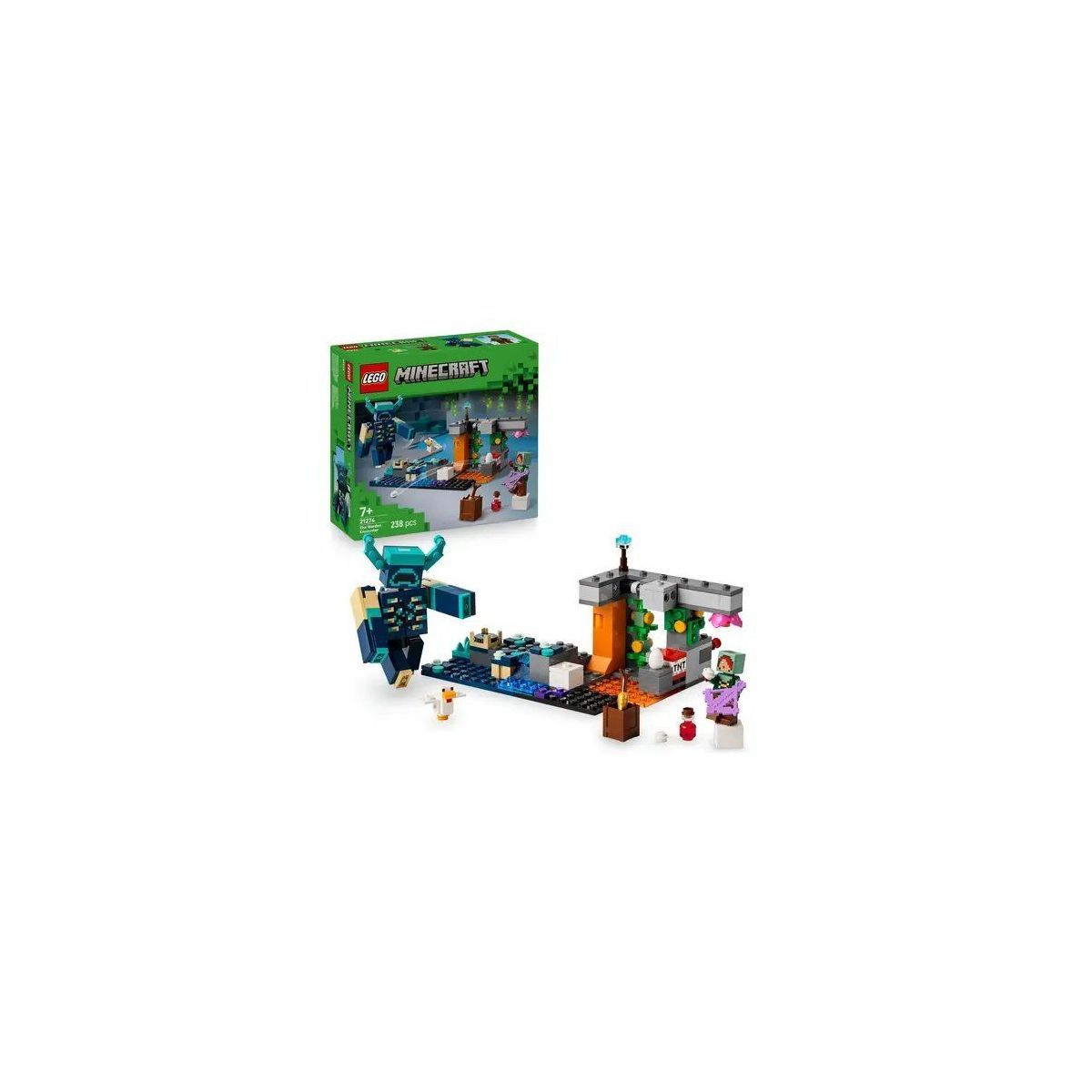 LEGO Minecraft Begegnung mit dem Wächter (21274) ist ein spannendes LEGO Spielzeug für Gamer, das Minecraft Spieler auf ein Actionabenteuer in der dunklen üppigen Höhle mitnimmt. Dieses Minecraft Set zum Sammeln lässt Jungen und Mädchen spannende Geschichten mit den eigenen Händen darstellen. Das Spielzeug ist ein tolles Geburtstags-, Weihnachts- oder Überraschungsgeschenk für Kinder ab 7 Jahren. Eine üppige Höhle voller Diamanten und Amethysten zum Sammeln bildet die Kulisse für viele Abenteuer. Dieses vielseitige LEGO Bau- und Spielset beinhaltet einen Stummen Ranger, ein Huhn und einen großen baubaren Wächter aus dem Videospiel Minecraft. Der Wächter kann Kopf, Arme und Beine bewegen. Eine von Hand ausgelöste TNT-Sprengfunktion und ein herabfallender Felsen sind nur zwei der coolen Actionfunktionen. Eine goldene Karotte und ein Trank stellen deine Gesundheit wieder her. Zusätzlichen digitalen Bauspaß bietet die LEGO Builder App. Kinder können in der App auf ihrem Mobilgerät 3D-Modellansichten vergrößern und drehen. Der LEGO Minecraft Wächter ist eine 9 cm große baubare Actionfigur. Enthält 238 Teile..
