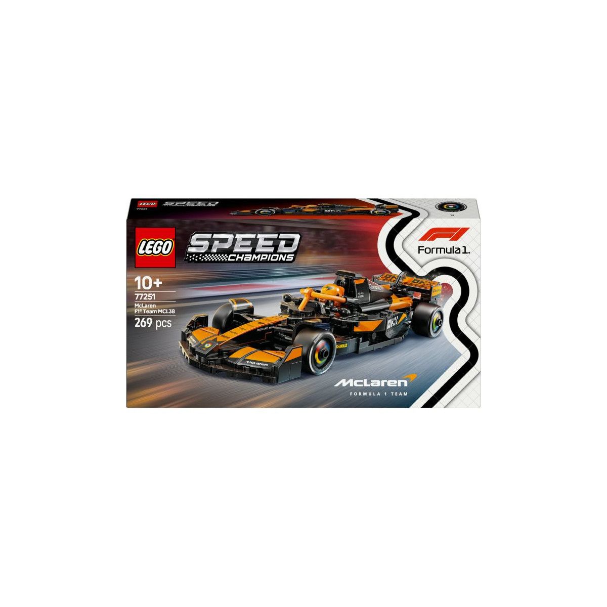 Das LEGO Speed Champions McLaren F1 Team MCL38 Rennauto (77251) lässt Jungen und Mädchen die Faszination echter Formel 1 Rennen hautnah erleben. Kinder und erwachsene Fans vom Motorsport können das Modell eines F1-Rennwagens bauen, der dieselben Designdetails hat wie der echte Bolide, der in der Formel-1-Saison 2024 an den Start gegangen ist. Das Formel 1 Modellauto hat ein Cockpit, das sich öffnen lässt, indem man den Halo-Bügel hochklappt, einen Heckflügel, einen Querlenker, Sponsorenaufkleber und breitere Hinterreifen mit dem Aufdruck „Pirelli. Zu dem baubaren Spielzeugauto gehört auch eine Rennfahrer Minifigur mit Helm und im McLaren Rennoverall, die man ins Cockpit setzen kann. LEGO Speed Champions Sets und Bauspielzeuge lassen Kinder und Motorsportfans Modelle von einigen der legendärsten Flitzern der Welt bauen. Hierzu zählen auch noch andere separat erhältliche Modelle von F1-Boliden, die in der Formel-1-Saison 2024 um den Titel mitgefahren sind. Jedes dieser LEGO Fahrzeuge und Autos lässt sich mithilfe einer gedruckten Bauanleitung zusammenbauen. Oder du lässt dich und dein Kind von der LEGO Builder App auf ein vergnügliches Bauabenteuer mitnehmen. Das McLaren F1 Team Rennauto ist 4 cm hoch, 20 cm lang und 7 cm breit. Enthält 269 Teile..