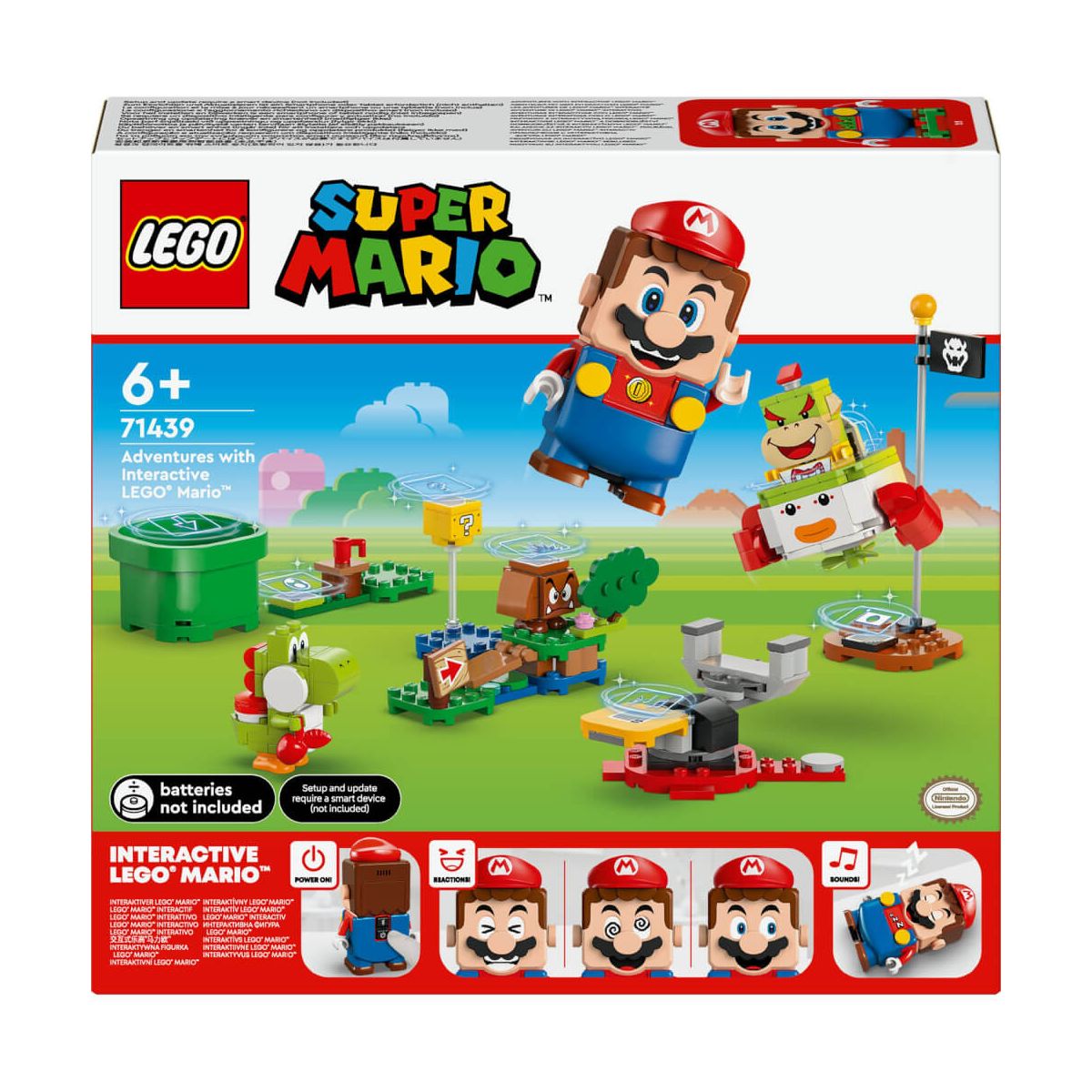 Dieses LEGO Super Mario Spielset (71439) lässt Kinder spannende Abenteuer mit dem interaktiven LEGO Mario darstellen, der versuchen kann, Bowser Jr. die Junior-Clown-Kutsche abzunehmen. Das Bowser Jr. Spielset beinhaltet neben dem interaktiven LEGO Mario auch die Minifiguren Bowser Jr., einen Gumba und Yoshi sowie 3 Landschaftsmodelle und ist ein tolles Nintendo Geschenk für Jungen, Mädchen und Gamer ab 6 Jahren. Begib dich von der Röhre zum Zielpfahl und lass LEGO Mario unterwegs digitale Reaktionen zeigen und Münzen sammeln. Grüße Yoshi, besiege den Gumba, stampfe auf den ?-Block, stoße Bowser Jr. um und fahre mit seiner Junior-Clown-Kutsche davon. Eine Bauanleitung findest du in der Box dieses Nintendo Sammlerstücks oder in der LEGO Super Mario App. Die App liefert unter anderem fantasievolle Bau- und Spielideen und dient als sicheres Forum, in dem Kinder Bilder ihrer Modelle teilen können. Füge die Modelle und Charaktere aus diesem Gumba-Spielzeug zu anderen Spielsets aus dem gewaltigen LEGO Super Mario Sortiment hinzu, um viele weitere Spielmöglichkeiten zu erhalten. Mit der Röhre ist das Modell 3 cm hoch, 10 cm breit und 8 cm tief. Enthält 218 Teile..