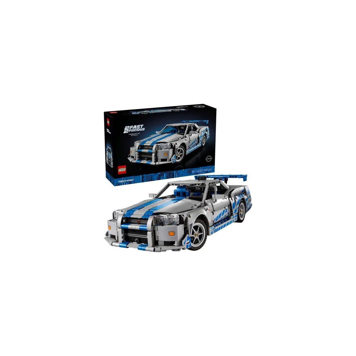Dieses Bauset für Erwachsene wird die Fans der Filmreihe Fast Furious begeistern. Der LEGO Technic 2 Fast 2 Furious Nissan Skyline GT-R (R34) Flitzer (42210) aus diesem Bauspielzeug für Erwachsene strotzt nur so vor coolen Details, die den Geist des legendären Flitzers großartig widerspiegeln. Füge Details wie die Lenkung und die Vorder- und Hinterradaufhängung des Modells originalgetreu zusammen. Öffne die Motorhaube, um den 6-Zylinder-Motor zu bestaunen. Verstell den Heckflügel und probiere die allererste LEGO Technic Driftfunktion aus. Dank dieser Funktion hebt sich das Auto leicht an, um spektakuläre Drifts und Rennszenen nachzustellen. Öffne die Türen, um an den Fahrersitz und die 3 NOS-Flaschen heranzukommen. Dieses Modell ist ein imposanter Hingucker und ein tolles Geschenk für Fans der Flitzer aus der Filmreihe Fast Furious. Die LEGO Autos zum Sammeln lassen Erwachsene wie dich ihre Begeisterung für superschnelle Flitzer ausleben. Eine gedruckte Bauanleitung liegt dem Set bei. Eine digitale Version dieser Bauanleitung ist außerdem in der LEGO Builder App verfügbar. Das Set besteht aus 1.410 Teilen. Das LEGO Technic Auto aus diesem 1.410-teiligen Set ist 12 cm hoch, 41 cm lang und 18 cm breit Enthält 1410 Teile..