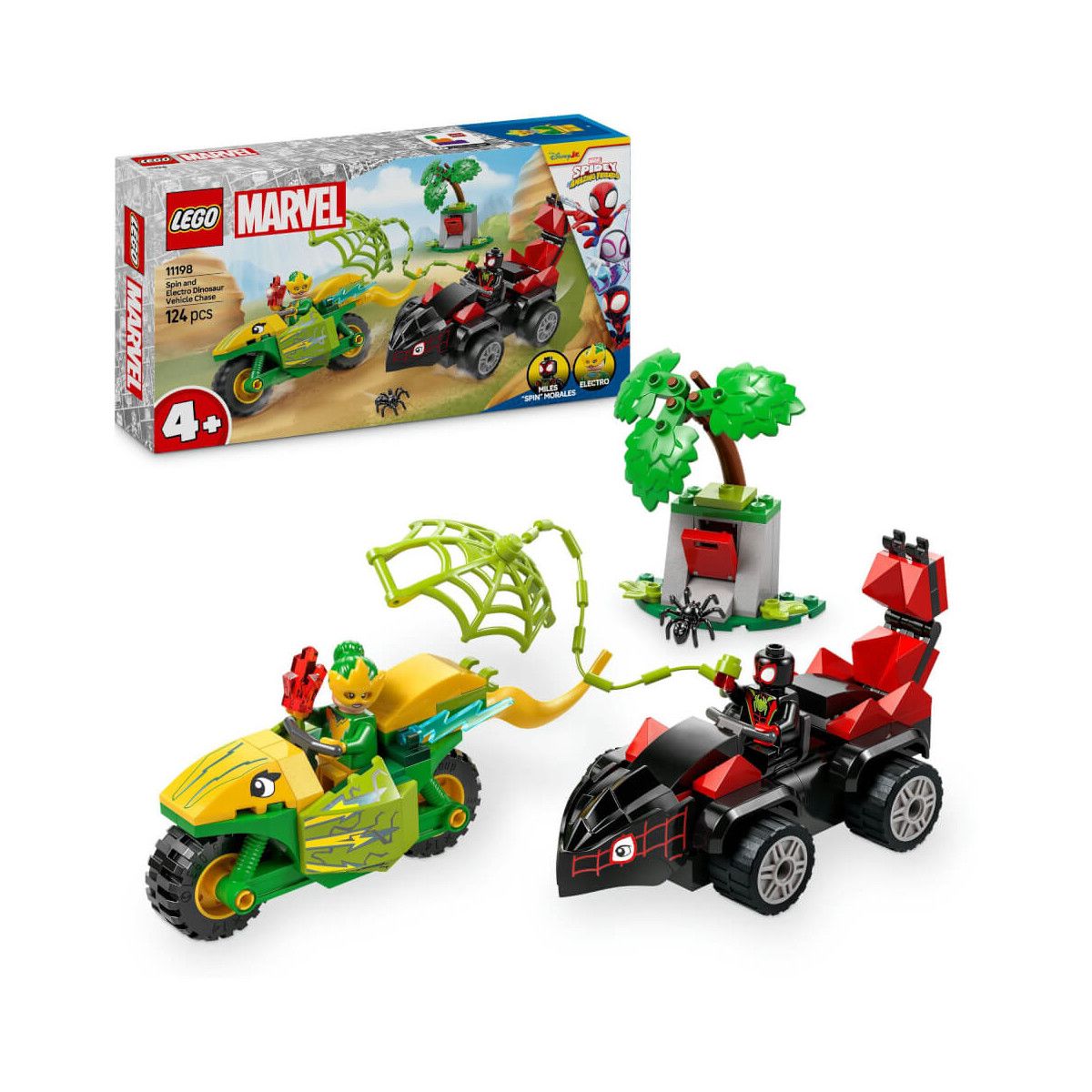 Überrasche Fans von Spidey und seine Super-Freunde mit diesem Superhelden-Bauspielzeug. Actionspaß mit Spin und Electro in ihren Dino-Flitzern (11198) ist ein Bau- und Spielset, das Jungen und Mädchen ab 4 Jahren fantasievoll spielen lässt. Beim Spielen mit dem Abenteuer Spielset entwickeln Vorschulkinder Kreativität und Selbstvertrauen und lernen, kleine Probleme zu lösen. Das Bauset stellt den Actionspaß aus der Staffel „Dino-Webs der TV-Serie Spidey und seine Super-Freunde nach. Das Set beinhaltet 2 Superhelden Minifiguren und 2 Dino-Flitzer zum Anschieben. Miles „Spin Morales sitzt in einem Stegosaurus-Auto, und Electro fährt ein Dilophosaurus-Bike. Ein großes Netz, ein Kristall, der in einem Felsbrocken versteckt ist, sowie Landschaftselemente laden Kinder zu vielen kreativen Rollenspielen ein. Jeder Beutel in der Box enthält LEGO Bausteine und ein großes Starter-Bauelement, um jeweils ein Modell und eine Figur ganz rasch zusammenstecken zu können, damit der Spielspaß sofort beginnen kann. Eine intuitive Bauanleitung in Form einer farbenfrohen Bildergeschichte liegt bei. LEGO Sets für Vorschulkinder ab 4 Jahren bieten sich besonders an, um Eltern und Kinder miteinander großen Bauspaß erleben zu lassen. Der Stegosaurus-Flitzer ist 5 cm hoch, 16 cm lang und 6 cm breit. Enthält 124 Teile..