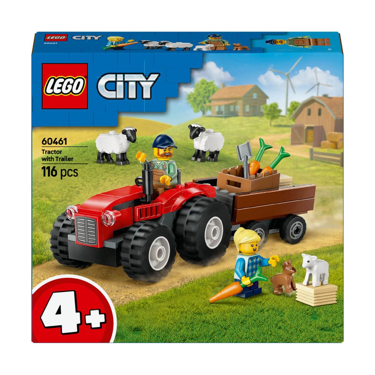 Mit dem LEGO City Traktor mit Anhänger (60461) Spielset holst du dir die Faszination des Landlebens ins Kinderzimmer. Ein tolles Bauernhof Spielzeug für Jungen und Mädchen ab 4 Jahren. Das Bauset beinhaltet einen roten Traktor mit abkoppelbarem Anhänger, einen Korb mit Karotten und 2 Heuballen. Und die beiden Minifiguren (Bauer und Enkelin) sowie 2 Schafe, ein Lamm und ein Welpe laden zu spannenden Rollenspielen und Geschichten ein. Dieses Lernspielzeug beinhaltet neben einem einfach zu bauenden Spielzeugtraktor auch ein LEGO Starter-Bauelement und eine Bildanleitung. Außerdem sind in der LEGO Builder App – unserer digitalen Bauanleitung – Vergrößerungs- und Drehfunktionen verfügbar, die Kinder beim Bauen 3D-Modellansichten aus jedem Winkel betrachten lassen. LEGO City Sets aus der Reihe der Starken Fahrzeuge beinhalten wirklichkeitsgetreue Fahrzeuge und faszinierende Figuren, die Kinder zu fantasievollen Rollenspielen einladen. Für viele weitere Spielmöglichkeiten können Kinder diesen Spielzeugtraktor mit anderen separat erhältlichen LEGO City Modellen kombinieren. Der Traktor ist 5 cm hoch, 9 cm lang und 6 cm breit. Enthält 116 Teile..