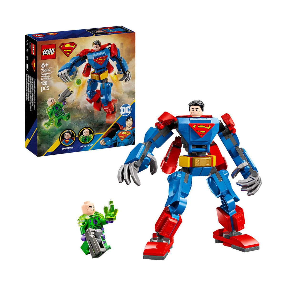 Superman Mech vs. Lex Luthor (76302) ist ein spannendes LEGO DC Spielset, das unzählige Bau- und Spielmöglichkeiten bietet. Der Mech wurde eigens für Fans ab 6 Jahren entwickelt, die Action- und Abenteuer-Spielzeuge lieben. Das LEGO DC Superman Bauset beinhaltet 2 Minifiguren: Eine Superman Figur mit Stoffumhang und umdrehbarem Kopf (mit 2 unterschiedlichen Gesichtsausdrücken) sowie die Lex Luthor Spielzeugfigur mit Shooter und Kryptonit-Kristall. Der baubare Mech kann Arme, Beine und Finger bewegen. Klappt man den Oberkörper auf, kann man Superman ins Minifigur-Cockpit stecken. Am Rücken des Mechs befinden sich 2 verstellbare Schubdüsen, die den Mech „fliegen lassen. Zusätzlichen digitalen Bauspaß bietet die intuitive LEGO Builder App. In der App können Baumeister 3D-Modellansichten vergrößern und drehen sowie ihren Baufortschritt verfolgen. Dieses Superhelden Bauspielzeug und LEGO DC Set ist ein tolles Geschenk für Jungen und Mädchen, egal ob zum Geburtstag, Weihnachten oder als spontane Überraschung. Der baubare Superman Mech ist 11 cm groß und lässt junge Superhelden aktiv spielen und spannende Abenteuer darstellen. Enthält 120 Teile..