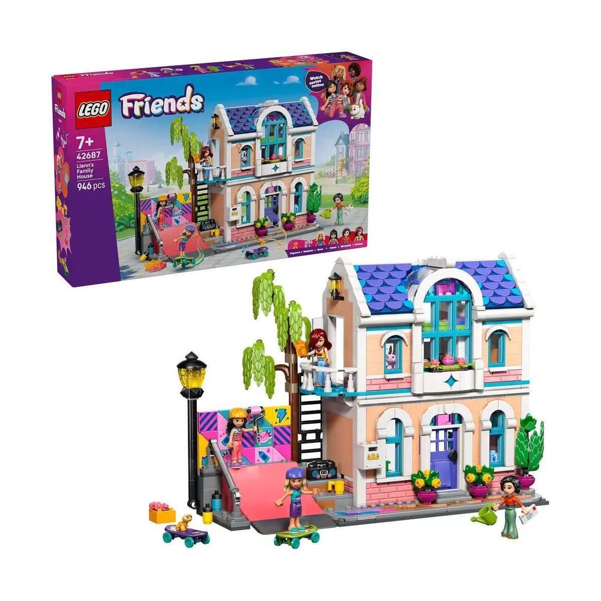 Willkommen in Lianns Familienhaus (42687) – einem liebevoll gestalteten LEGO Friends Miniatur Puppenhaus, das Kinder ab 7 Jahren dazu einlädt, eigene Geschichten zu erfinden. Mädchen und Jungen können ein farbenfrohes Spielzeughaus mit Küche, Wohnzimmer, Schlafzimmer, Balkon und Garten entdecken. Liann und ihre Freunde verbringen ihre Freizeit mit kreativen Hobbys wie Skateboardfahren, Malen oder der Pflege ihrer tierischen Mitbewohner. Das Spielset enthält 4 Mini Puppen sowie zahlreiches Zubehör, darunter Skateboards, Kunstmaterialien, ein Schreibtisch, eine Musikanlage und zwei Terrarien. Zum Spielen laden auch viele süße Lebensmitteldetails ein: Essstäbchen, Nudelboxen, Sojasauce, Milch und Orangensaft. Kreative Kinder können sogar das farbenfrohe Wandbild individuell gestalten, dank der abnehmbaren Fliesen ein echtes Highlight für Design-Fans. Dieses Bauset ist ein wunderbares Geschenk für Mädchen ab 7 Jahren, die fantasievolle Rollenspiele lieben oder nach vielseitigem Puppenhaus Zubehör suchen. Perfekt für kleine Tierfreunde, die Spaß an Haustier Spielzeug für Kinder haben. Mit der LEGO Builder App wird das Bauen zum interaktiven Erlebnis – mit 3D- Anleitungen und Fortschrittsanzeige. Das LEGO Set enthält 946 Teile. Das Spielzeughaus ist 20 cm hoch, 29 cm breit und 12 cm tief Enthält 946 Teile PUPPENHAUS SPIELZEUG: Lade Kinder zum Spielen im LEGO Friends Lianns Familienhaus Spielzeug für Mädchen und Jungen ab 7 Jahren ein, das 4 Mini Puppen und 2 Tierfiguren für fantasievolle Rollenspiele enthält VIEL ZU ERKUNDEN: Das zweistöckige Haus enthält eine Küche, ein Wohnzimmer, ein Schlafzimmer, einen Balkon und einen Garten sowie einen Skatepark für Tricks und ein Wandbild 4 MINI PUPPEN UND 2 TIERFIGUREN: Enthält kleine Puppen Liann, Michelle, Paisley und Nova sowie die LEGO Tierfiguren Gecko und Axolotl mit eigenen Terrarien und Futter PUPPENHAUS ZUBEHÖR: Das Familienhaus ist voller Details, die Lianns Interessen und Familienleben zeigen, inkl. Kunstmaterialien, Skateboards, Essstäbchen, Nudelschachteln, Sojasauce, Milch, Orangensaft KINDER GEBURTSTAGSGESCHENK: Dieses Bauset ist ein beliebtes Geschenk für Mädchen und Jungen ab 5 Jahren, die fantasievolles Spielen mit Familie und Freunden lieben DIGITALE ANLEITUNGEN: Die LEGO Builder App führt Kinder auf ein intuitives Abenteuer, bei dem sie Sets speichern, den Fortschritt verfolgen und Modelle mit 3D-Anleitungen heranzoomen und drehen können ONLINE-SERIE: Weitere kreative Spielideen für andere separat erhältliche Sets findest du in der Online-Serie LEGO Friends: Das nächste Kapitel, in der Kinder die Freunde in Heartlake City kennenlernen.