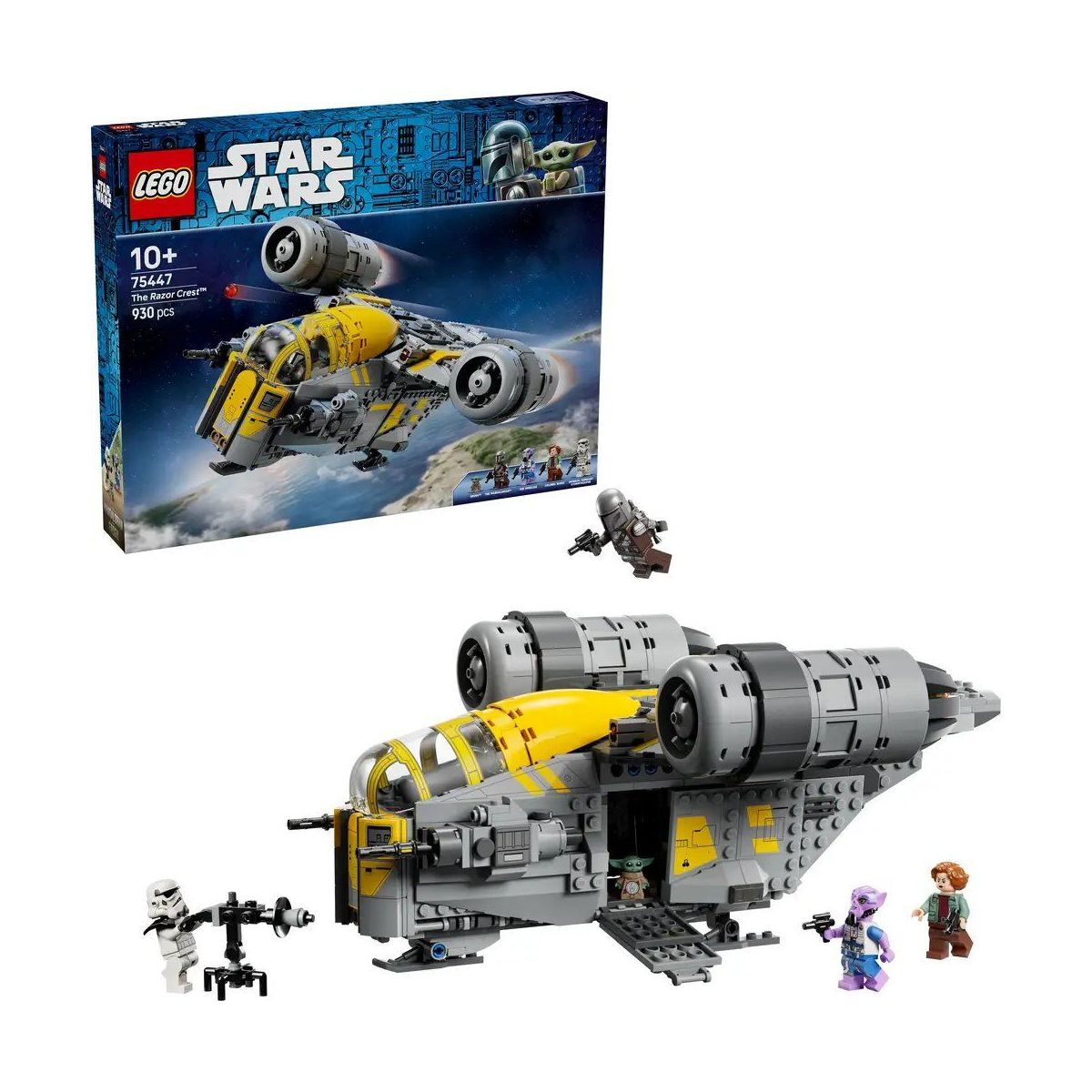 LEGO Star Wars Razor Crest (75447) ist ein Bauspielzeug, das Kinder mitten in die Abenteuer aus Star Wars: The Mandalorian and Grogu versetzt. Das legendäre Raumschiff wird in Design und Farben detailgetreu nachgebildet und lädt dazu ein, bekannte Szenen nachzuspielen oder eigene Geschichten zu erfinden. Dank des abnehmbaren Cockpitdachs, der aufklappbaren Seitenplatten sowie der herunterklappbaren Landerampen ist das LEGO Raumschiff von allen Seiten gut bespielbar. Im Inneren finden die LEGO Minifiguren Colonel Ward, Zeb Orrelios, ein Sturmtruppler und der Mandalorianer sowie die LEGO Figur Grogu Platz. Kinder können das Triebwerk und den Laderaum erkunden, Figuren im Cockpit platzieren oder Zubehör wie die E-Netz- Blasterkanone des Sturmtrupplers und den Raketenrucksack des Mandalorianers einsetzen. So entsteht abwechslungsreicher Spielspaß, der Modellbau und fantasievolles Spielen verbindet. Dieses LEGO Star Wars Bastelset ist ein beliebtes Kinder Geschenk für Fans ab 10 Jahren, die 3D Puzzle und Raumschiffe lieben. Die LEGO Builder App unterstützt mit digitalen Bauanleitungen, bei denen sich das Modell in 3D drehen und der Baufortschritt speichern lässt. Mit 930 Teilen bietet dieses Set langanhaltenden Bau- und Spielspaß für kleine Star Wars Fans. Das Raumschiff ist 13 cm hoch, 32 cm lang und 24 cm breit Enthält 930 Teile SPIELZEUG ZUM BAUEN: Die LEGO Star Wars Razor Crest mit detailgetreuer Lackierung aus The Mandalorian and Grogu lädt Kinder dazu ein, eigene Missionen zu bauen und galaktische Abenteuer zu erleben 5 LEGO STAR WARS CHARAKTERE: Der Mandalorianer mit Blasterpistole und Raketenrucksack, der Sturmtruppler des Restimperiums mit Blasterkanone, Colonel Ward, Zeb Orrelios und die LEGO Figur Grogu laden zum Spielen ein 5 LEGO STAR WARS FIGUREN: Mit Grogu, Colonel Ward, Zeb Orrelios, einem Sturmtruppler und dem Mandalorianer samt Blaster und Raketenrucksack wird das Spielset zum actionreichen Abenteuer E-NETZ-BLASTERKANONE: Die baubare E-Netz-Blasterkanone des Sturmtrupplers bringt Action in den Modellbau und lässt Kinder epische Gefechte im LEGO Star Wars Universum nachstellen STAR WARS GESCHENK FÜR KINDER: Dieses Bauspielzeug für jede Menge Actionspaß ist eine tolle Überraschung für Kinder und alle Fans ab 10 Jahren, die Star Wars: The Mandalorian and Grogu lieben ENTDECKE DAS GANZE SORTIMENT: Schau dir weitere separat erhältliche LEGO Star Wars Sammlersets zu The Mandalorian and Grogu an, um spannende Szenen nachzuspielen und eigene Geschichten zu erfinden DIGITALE BAUANLEITUNGEN: Die LEGO Builder App bietet ein digitales Bauabenteuer. 3D-Anleitungen lassen Kinder das Modell vergrößern und drehen. Die App zeigt außerdem, wie weit man mit dem Modell schon ist.