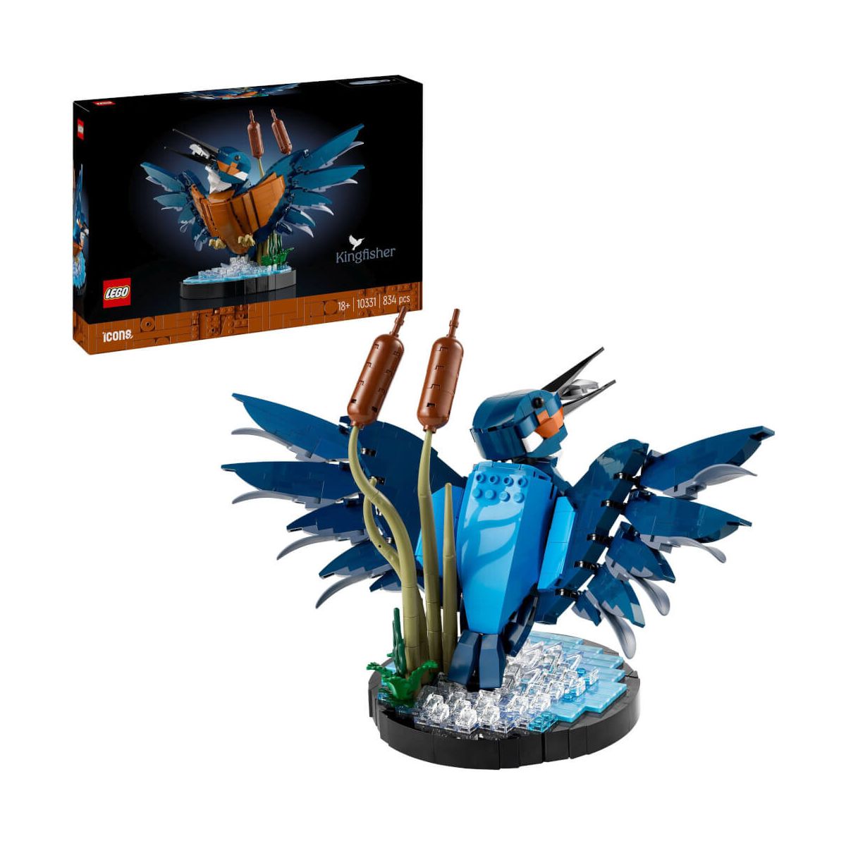 Erschaffe eine imposante Vogel-Deko für dein Wohnzimmer oder Büro mit diesem Modellbausatz für Erwachsene. Der LEGO Icons Eisvogel (10331) ist ein grandioses Geschenk für Vogelliebhaber und ein spannendes Projekt für Neulinge und erfahrene LEGO Baumeister. Das Vogel-Modell stellt einen Eisvogel dar, der für sein markantes Gefieder und seine beachtlichen Jagdkünste bekannt ist. In dieser Darstellung taucht er gerade mit einem erbeuteten Fisch wieder aus dem Wasser auf. Die Wasserkulisse besteht zum Teil aus baubarem Schilf und dient zugleich als Ständer. Bring den Kopf und die Krallen in eine Pose, die dir besonders gefällt, und stell den LEGO Vogel dann aus, um ihn von allen bestaunen zu lassen. In der LEGO Builder App findest du eine digitale Version der Bauanleitung, die diesem Set zum Basteln für Erwachsene beiliegt. Die inspirierende Kollektion der LEGO Sets für Erwachsene bietet dir Raum zum Entspannen. Das LEGO Icons Vogel-Modell ist ein besonderes Geschenk für erwachsene Vogelfreunde, Männer und Frauen, die kreatives Bauen und Basteln lieben. Dieses Modell ist 21 cm hoch, 31 cm breit und 17 cm tief. Enthält 834 Teile.