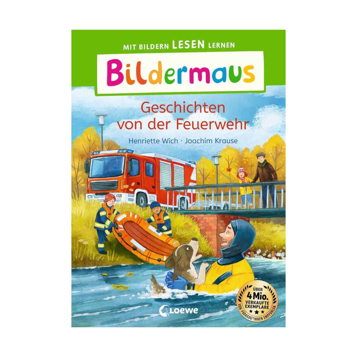 Tatütata die Feuerwehr hilft, wo sie kann Hund Olli, der in einen Fluss gefallen ist, oder dem verirrten Waschbären auf Ömers Dachboden Und als Kinder einen Brand im Wald entdecken, rufen auch sie die 112 ist ja klar Mit der Reihe Bildermaus können Kinder ab 5 Jahren (Vorschule) spielerisch mit Bildern lesen lernen Jedes Hauptwort ist dabei durch ein Bild ersetzt Schenken Sie Ihrem Kind ein Bildermaus Buch und legen Sie damit den Grundstein zum erfolgreichen Lesenlernen Starkes Thema für Jungen und Mädchen Feuerwehr Bewährtes Konzept Seit über 25 Jahren begleitet die Bildermaus Kinder erfolgreich auf dem Weg zum Lesenlernen Über 4 Millionen verkaufte Exemplare in Deutschland, Österreich und der Schweiz Ideal für Leseanfänger ab der Vorschule, zum Vor und Mitlesen Von Pädagogen mitentwickelt und empfohlen Bilder ersetzen Wörter Abwechslungsreiche und spannende Geschichten Jedes Buch ist genau auf die Interessen von Kindern im Vorschulalter ausgerichtet Einfache, kurze Sätze in großer Fibelschrift unterstützen optimal den Leselern Prozess Abwechslungsreiche Quizfragen auf Antolin steigern die Lesemotivation.