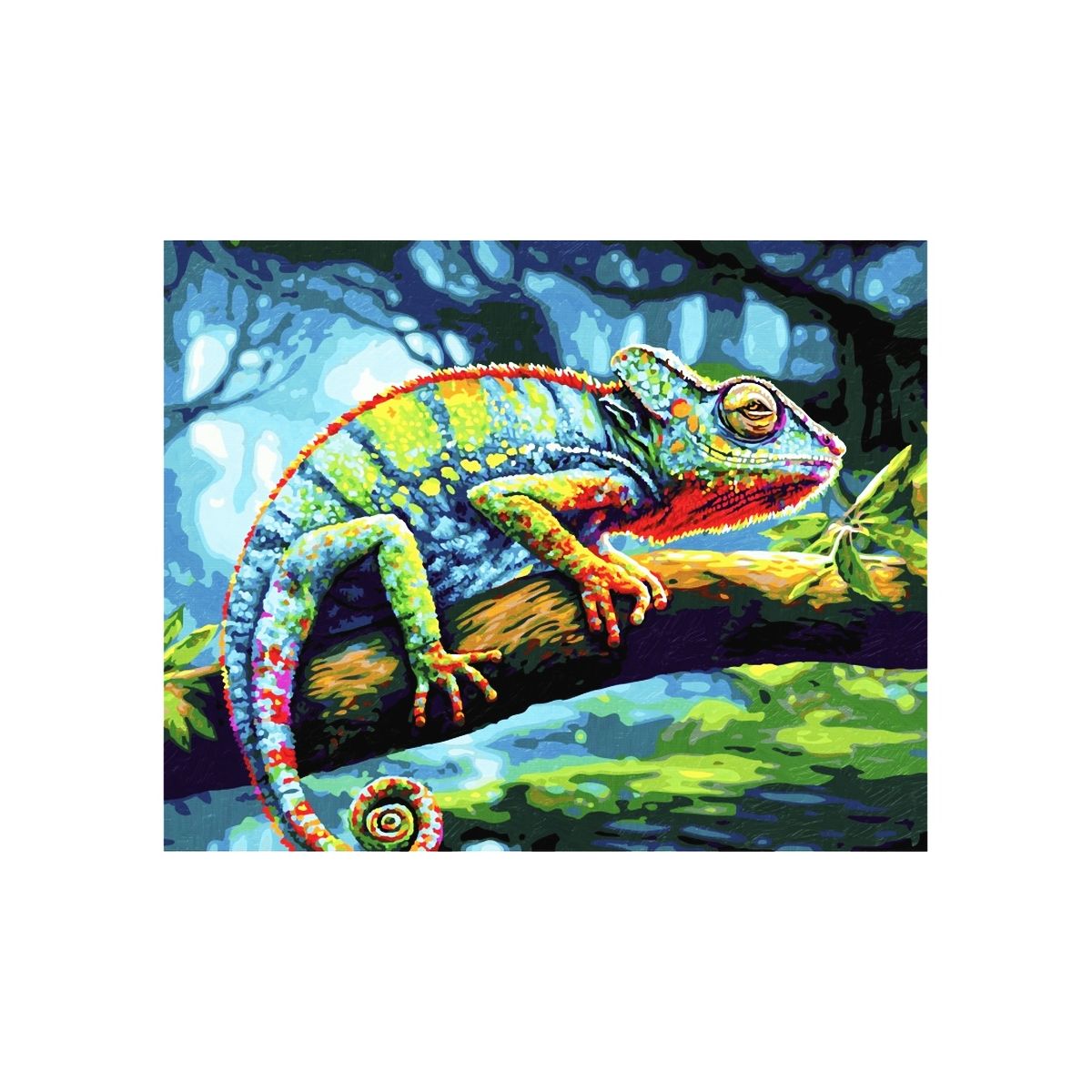 In der Vielfalt der Natur findet man wohl kaum ein Tier, das so sehr fasziniert wie das Chamäleon - ein Lebewesen, das tief in der afrikanischen Mythologie verankert ist. Ihre Farbwechsel, die hauptsächlich zur Kommunikation und Partnerwahl dienen, spiegeln die reiche Diversität und Schönheit der Natur wider. Erlebe, wie du mit jedem Pinselstrich die dynamischen Farben und die einzigartige Textur dieses einzigartigen Reptils auf deiner Leinwand zum Leben erweckst. Das Motiv bietet nicht nur eine kreative Flucht in die bunte Welt der Tiere, sondern feiert auch die wunderbare Anpassungsfähigkeit, die das Chamäleon so besonders macht. Perfekt für Hobbykünstler und Naturbegeisterte gleichermaßen, bringt das „Chamäleon eine großartige Farbenpracht an jede Wand. Besonderheiten: Fühl- und sichtbare Leinenstruktur. Sie bewirkt nicht nur eine wesentlich verbesserte Optik des fertigen Gemäldes, sondern unterstreicht auch den malerischen Charakter des Bildes und unterstützt den gewünschten Öl-auf-Leinwand-Effekt. Altersempfehlung: ab 14 Jahren Genre: Tiere Größe: 40x50 cm Artikelnummer: 609130904 Lieferumfang: • 30 Acrylfarben (wasserlöslich, schnelltrocknend und lichtecht) • 1 Malvorlage • 1 Pinsel (Synthetikhaar) • 1 Malanleitung • 1 Kontrollblatt.