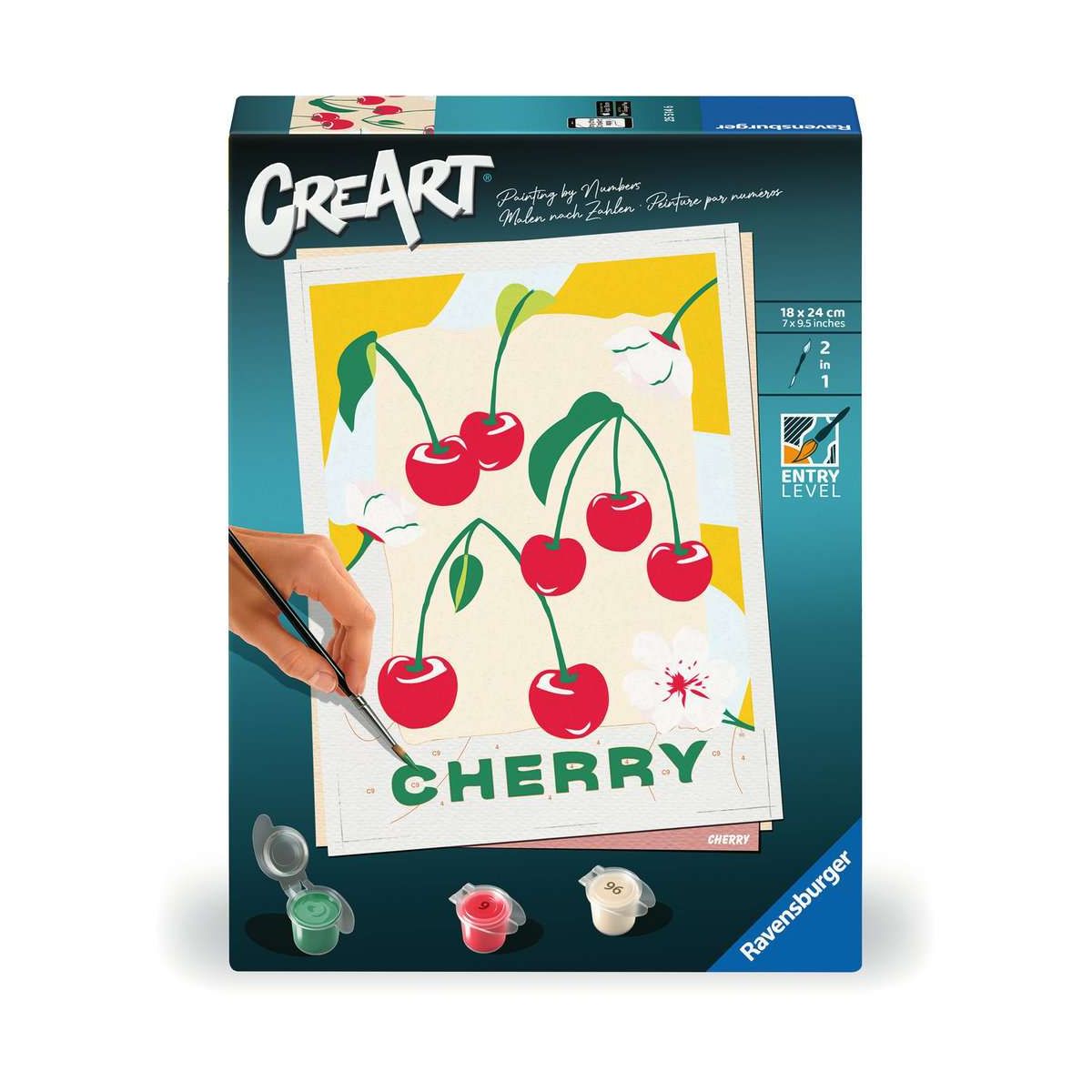 Coole Motive, leuchtende Farben und glänzender Lack für ein perfektes Finish. Das trendige Motiv Kirschen sorgt für großartigen Malspaß für Erwachsene ab 12 Jahren. Die Motivlinien sind bereits aufgedruckt und nummeriert und werden mit den fertig gemischten Acrylfarben ausgemalt. Das ist Malspaß mit Erfolgsgarantie für einen einzigartigen Wandschmuck. So einfach war malen noch nie!Mit CreArt - Malen nach Zahlen von Ravensburger den Weg zur inneren Ruhe und Entspannung finden. Einfach auspacken und los malen: jedes Malset enthält alles, was zum Malen benötigt wird und es ist kein Mischen der Farben notwendig. Das fertig gemalte Bild eignet sich als trendige Dekoration in jedem Zuhause. Das Ravensburger CreArt - Malen nach Zahlen Programm bietet eine große Motivauswahl für Kinder und Erwachsene..