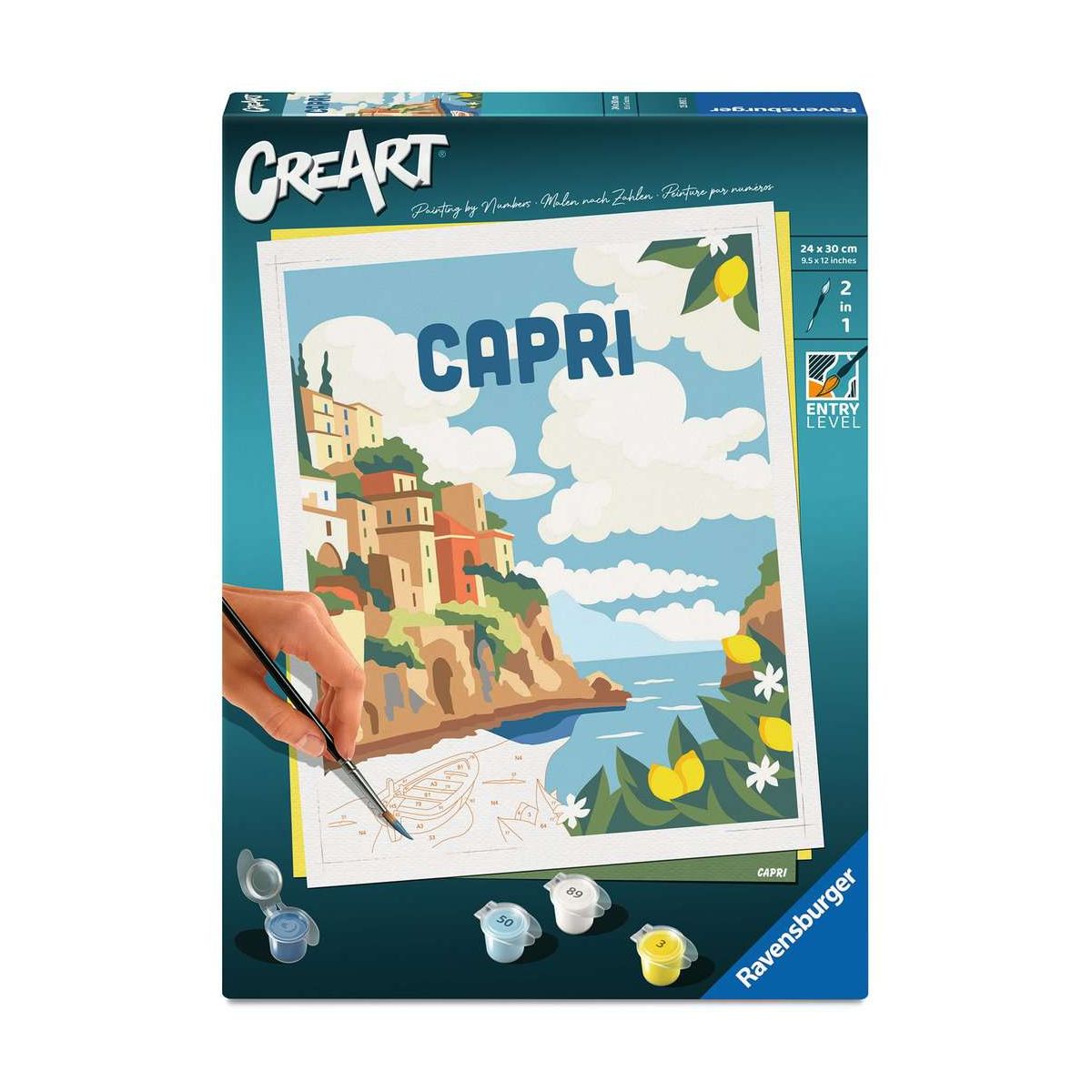 Coole Motive, leuchtende Farben und glänzender Lack für ein perfektes Finish. Das trendige Motiv Capri sorgt für großartigen Malspaß für Erwachsene ab 12 Jahren. Die Motivlinien sind bereits aufgedruckt und nummeriert und werden mit den fertig gemischten Acrylfarben ausgemalt. Das ist Malspaß mit Erfolgsgarantie für einen einzigartigen Wandschmuck. So einfach war malen noch nie!Mit CreArt - Malen nach Zahlen von Ravensburger den Weg zur inneren Ruhe und Entspannung finden. Einfach auspacken und los malen: jedes Malset enthält alles, was zum Malen benötigt wird und es ist kein Mischen der Farben notwendig. Das fertig gemalte Bild eignet sich als trendige Dekoration in jedem Zuhause. Das Ravensburger CreArt - Malen nach Zahlen Programm bietet eine große Motivauswahl für Kinder und Erwachsene..