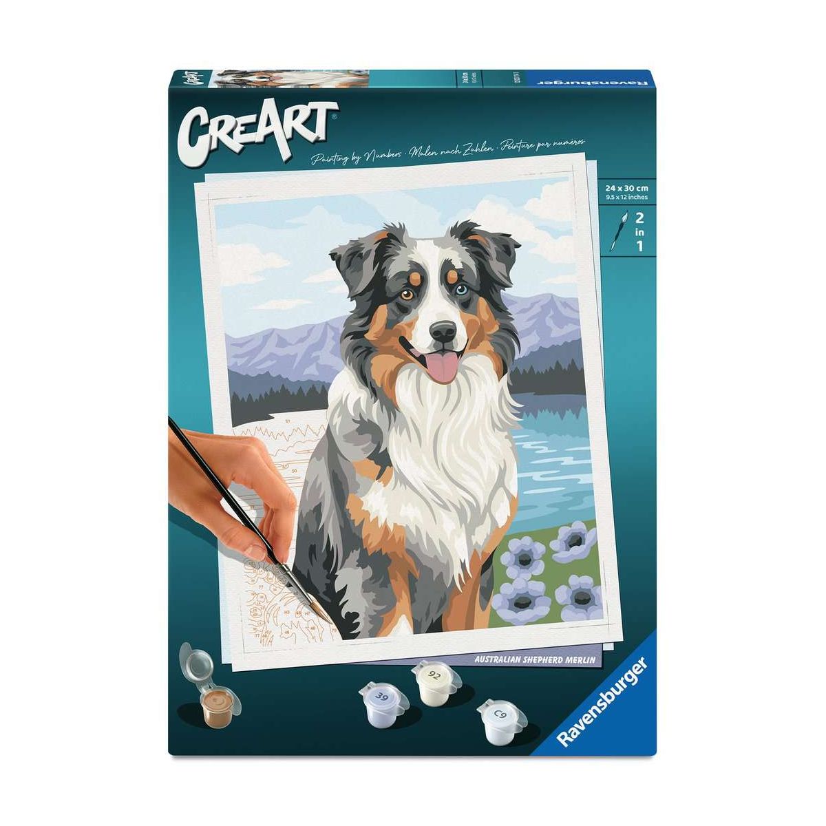 Coole Designs, leuchtende Farben und glänzender Lack für ein perfektes Finish. Das trendige Motiv Australian Shepherd Merlin bietet großartigen Malspaß für Erwachsene ab 12. Die Motivlinien sind bereits vorgedruckt und nummeriert und müssen mit den fertig gemischten Acrylfarben ausgemalt werden. Das ist Malspaß mit Erfolgsgarantie für eine einzigartige Wanddekoration. Malen war noch nie so einfach!Mit CreArt - Malen nach Zahlen von Ravensburger den Weg zur inneren Ruhe und Entspannung finden. Einfach auspacken und los malen: jedes Malset enthält alles, was zum Malen benötigt wird und es ist kein Mischen der Farben notwendig. Das fertig gemalte Bild eignet sich als trendige Dekoration in jedem Zuhause. Das Ravensburger CreArt - Malen nach Zahlen Programm bietet eine große Motivauswahl für Kinder und Erwachsene..