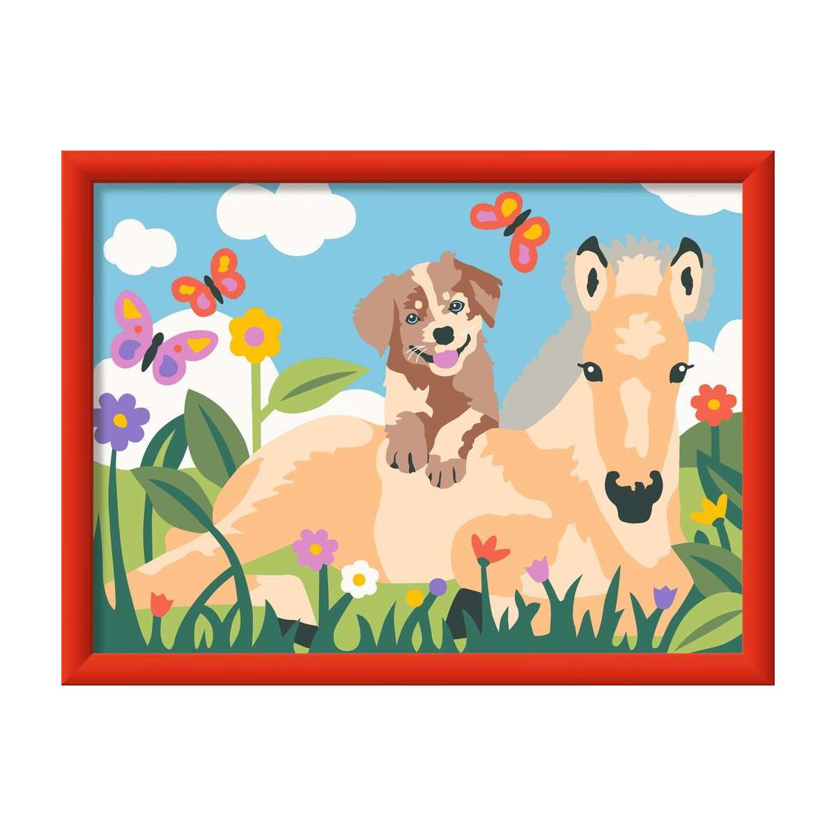 Farbige Motivlinien: Größerer Malspaß ein schöneres Ergebnis!Dank der farbigen Motivlinien, können die Kinder das ganze Motiv Fohlen und Welpe und die Farben schneller erkennen. Der Pinsel hat eine gute Führung und so entsteht ein perfektes Bild.Die schönen Motive zum Ausmalen sind eine tolle Geschenkidee für Kinder ab 7 Jahren und eine schöne Dekoration. In diesem Malset sind bereits 15 fertig gemischte Acrylfarben enthalten. Verpackungsdesign kann abweichen. Mit Pferde-Stickerbogen!.