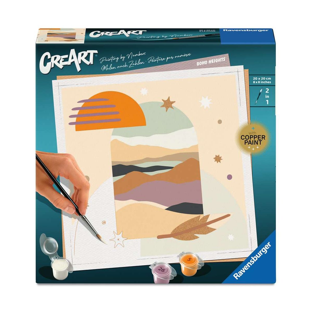 Coole Designs, leuchtende Farben und glänzender Lack für ein perfektes Finish. Das trendige Motiv Boho bietet großartigen Malspaß für Erwachsene ab 12. Die Motivlinien sind bereits vorgedruckt und nummeriert und müssen mit den fertig gemischten Acrylfarben ausgemalt werden. Das ist Malspaß mit Erfolgsgarantie für eine einzigartige Wanddekoration. Malen war noch nie so einfach!Mit CreArt - Malen nach Zahlen von Ravensburger den Weg zur inneren Ruhe und Entspannung finden. Einfach auspacken und los malen: jedes Malset enthält alles, was zum Malen benötigt wird und es ist kein Mischen der Farben notwendig. Das fertig gemalte Bild eignet sich als trendige Dekoration in jedem Zuhause. Das Ravensburger CreArt - Malen nach Zahlen Programm bietet eine große Motivauswahl für Kinder und Erwachsene..