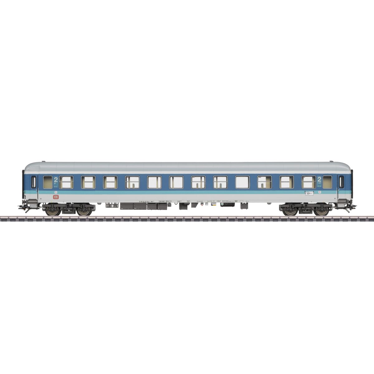 Modell: Komplette Neukonstruktion der InterRegio-Wagenfamilie. Mehrfarbige Inneneinrichtung. Serienmäßig eingebaute LED-Innenbeleuchtung mit Pufferkondensator zur Überbrückung von kurzfristigen stromlosen Stellen. Ausgestattet mit trennbaren, stromführenden Kurzkupplungen. Die Innenbeleuchtung funktioniert im Verbund mit dem Schlusslichtwagen aus dem Set 43901, die vorgegebene Fahrzeugreihenfolge ist dafür einzuhalten. Stirnseitig rot transparente Schlusslicht-Einsätze an den Wagenenden. Typspezifisch gestalteter Unterboden mit vielen angesetzten Details. Pufferhöhe nach NEM. Mit Drehgestellen MD 366 mit angesetztem Generator. Separat angesetzte Lüfter an den Wagenkästen. Aufgedruckte Wagenlaufschilder. Befahrbarer Mindestradius 360 mm. Länge über Puffer 28,2 cm.