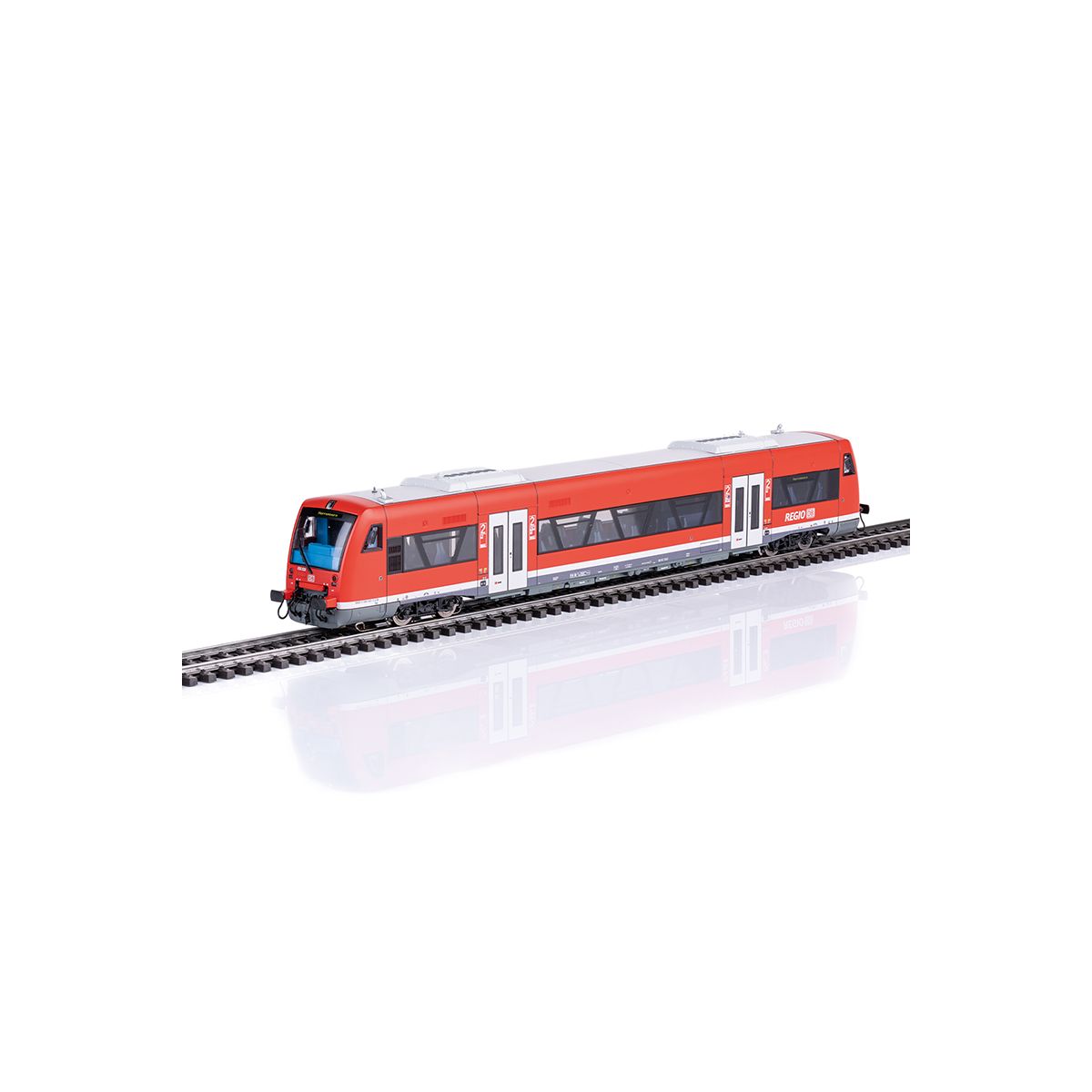 Vorbild: Dieseltriebwagen vom Typ Regio Shuttle RS1 als Baureihe 650 der Deutschen Bahn AG (DB AG). Ausführung mit Schraubenkupplung, Puffern und obenliegender Zugzielanzeige. Verkehrsrote Grundfarbgebung. Betriebsnummer 650 020-0. Betriebszustand ab 2015.